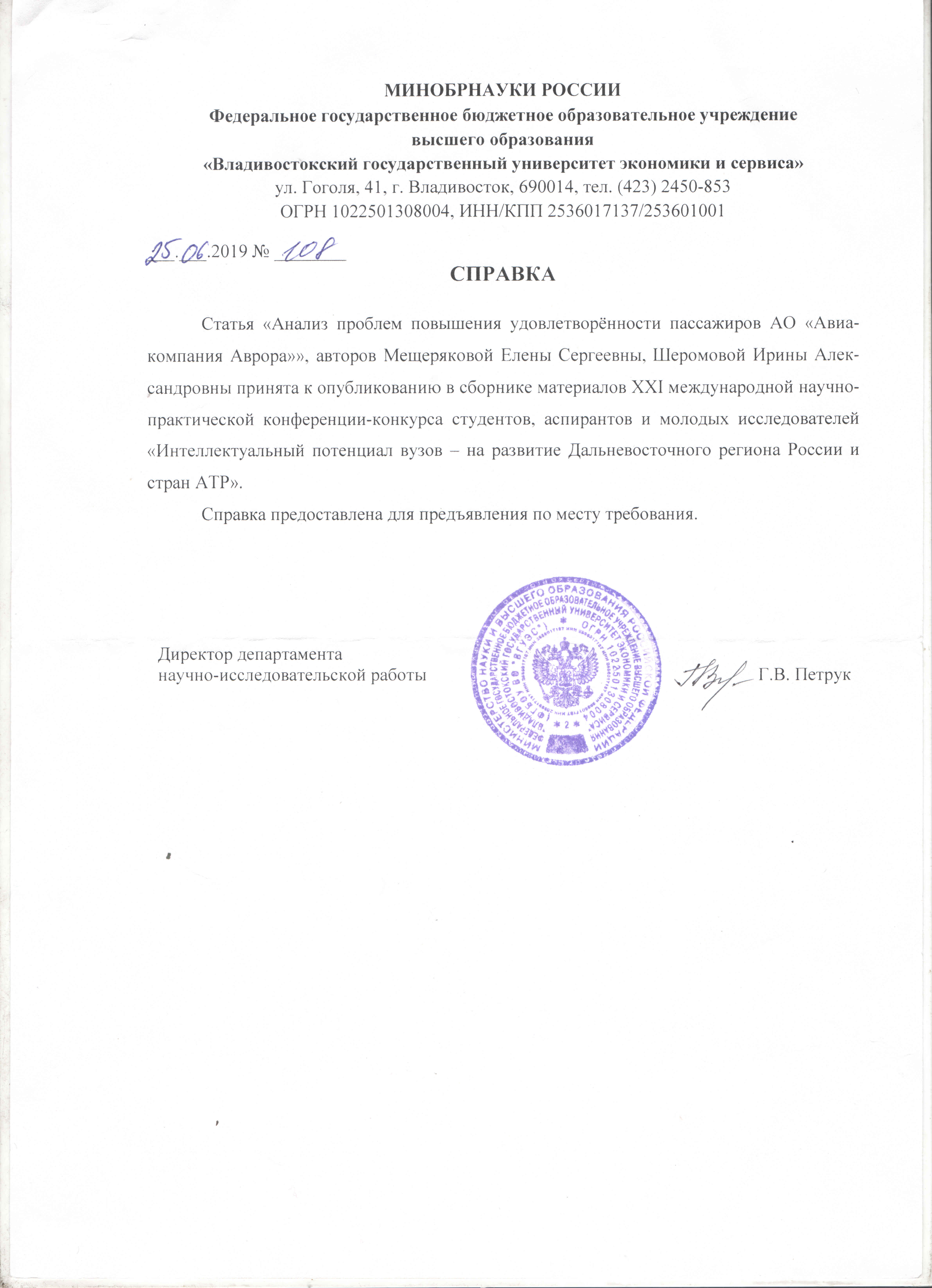 Интеллектуальный потенциал вузов - на развитие ДВ региона России и стран АТР: Материалы XXI международной научно-практической конференции-конкурса студентов, аспирантов и молодых ученых