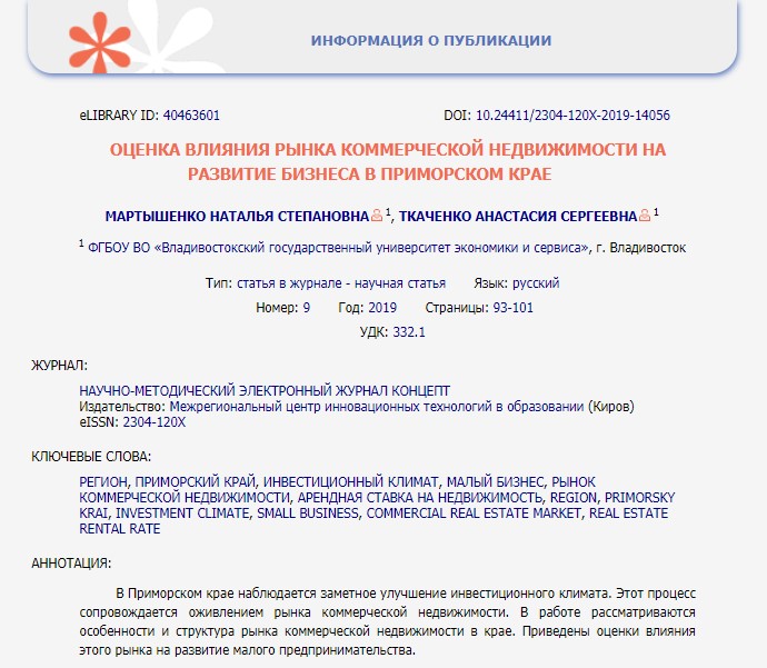 Оценка влияния рынка коммерческой недвижимости на развитие бизнеса в Приморском крае