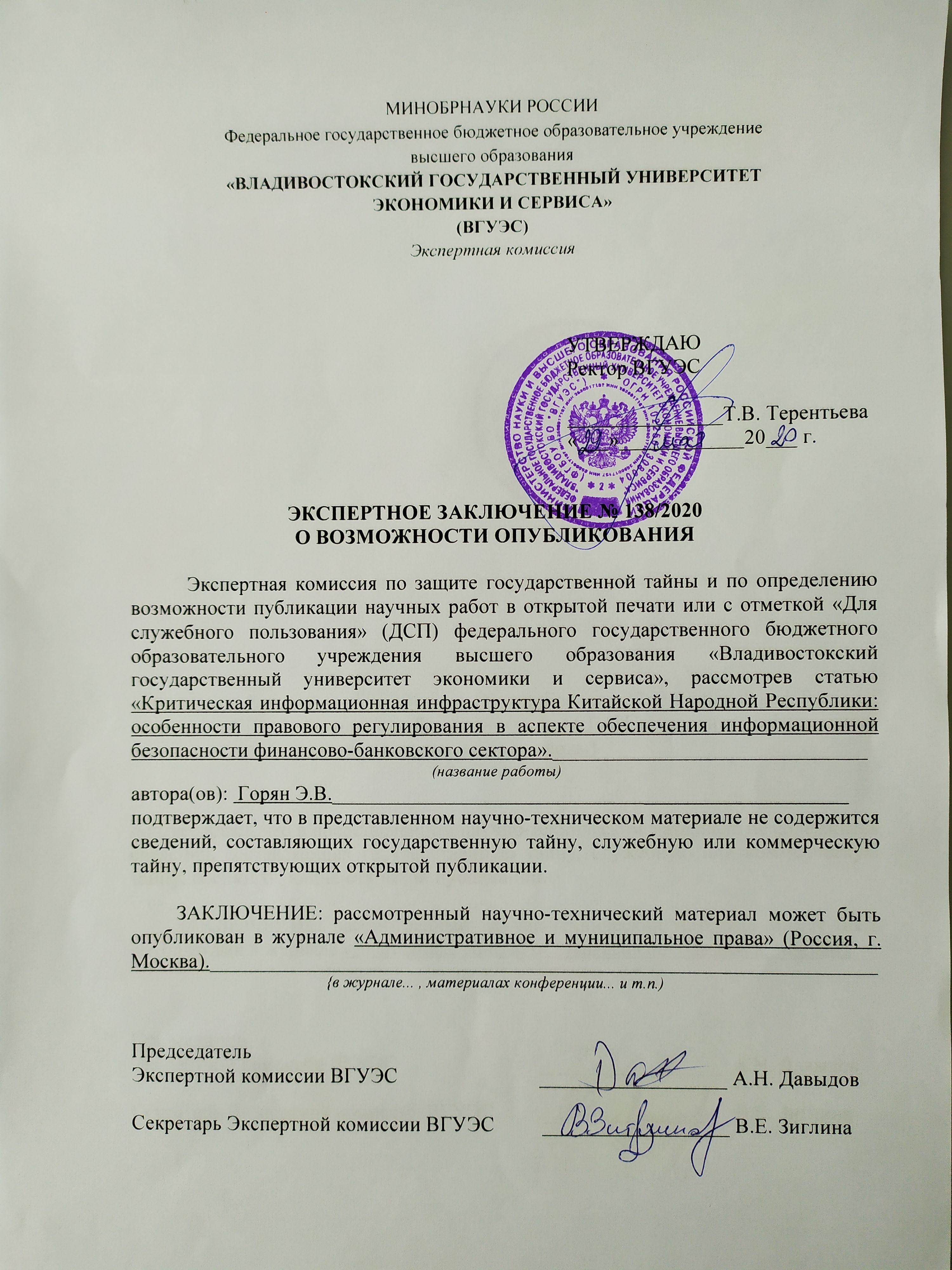 Критическая информационная инфраструктура Китайской Народной Республики: особенности правового регулирования в аспекте обеспечения информационной безопасности финансово-банковского сектора
