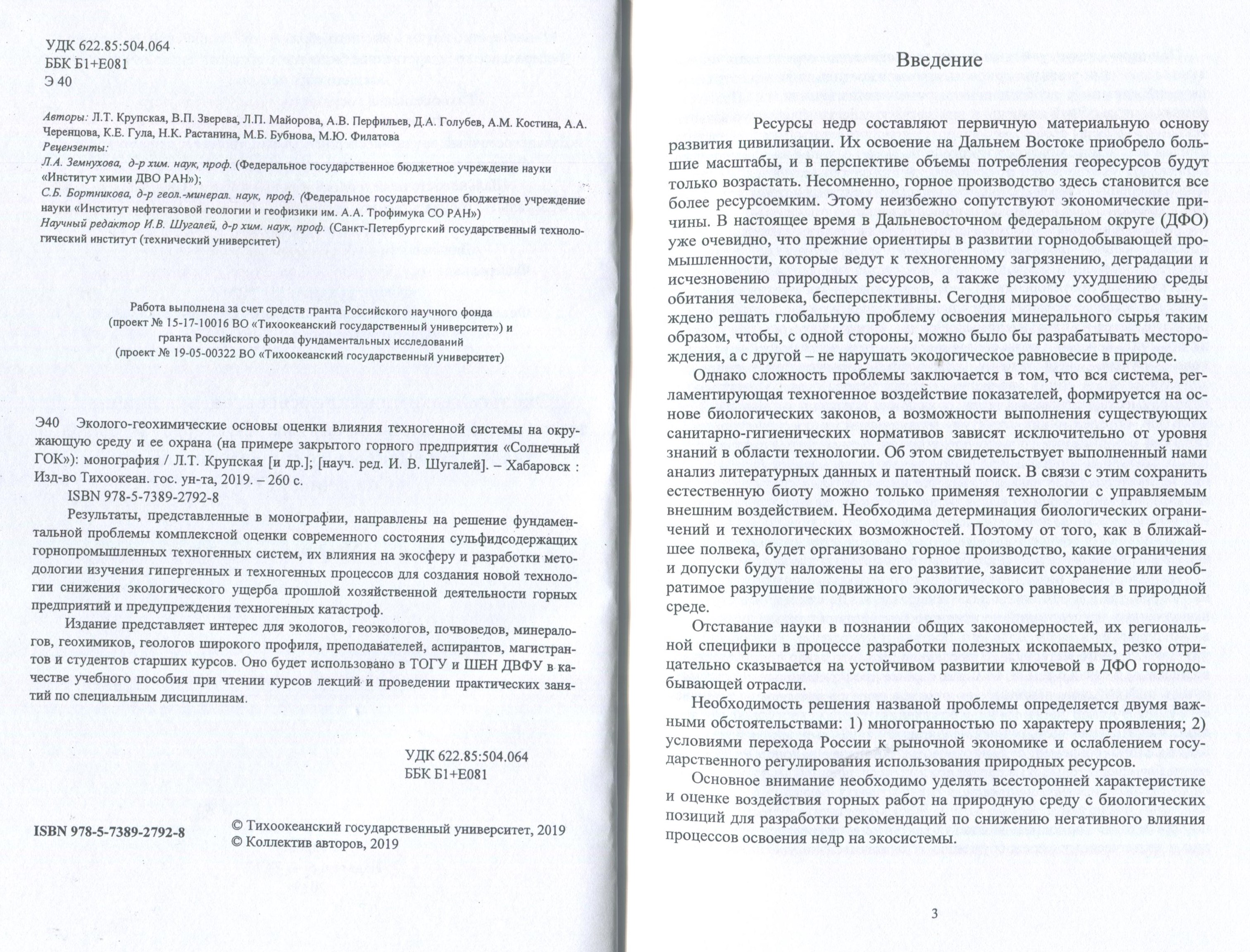 Эколого-геохимические основы оценки влияния техногенной системы на окружающую среду и её охрана (на примере закрытого горного предприятия “Солнечный ГОК”)