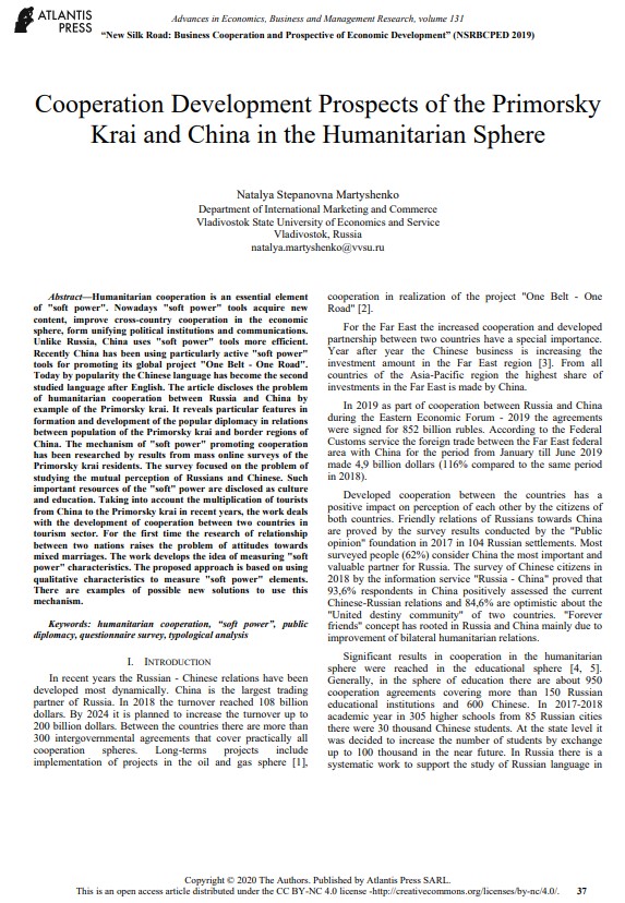 Cooperation developmrnt prospects of the Primorsky Krai and China in the humanitarian sphere