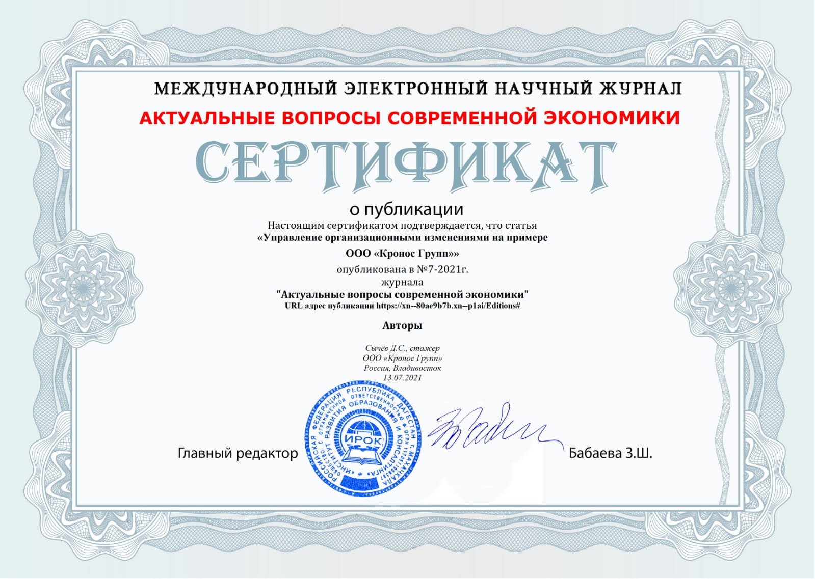Управление оганизационными изменениями на примере ООО "Кронос Групп"