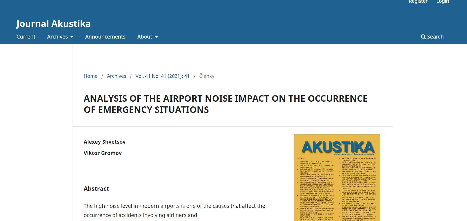 ANALYSIS OF THE AIRPORT NOISE IMPACT ON THE OCCURRENCE OF EMERGENCY SITUATIONS