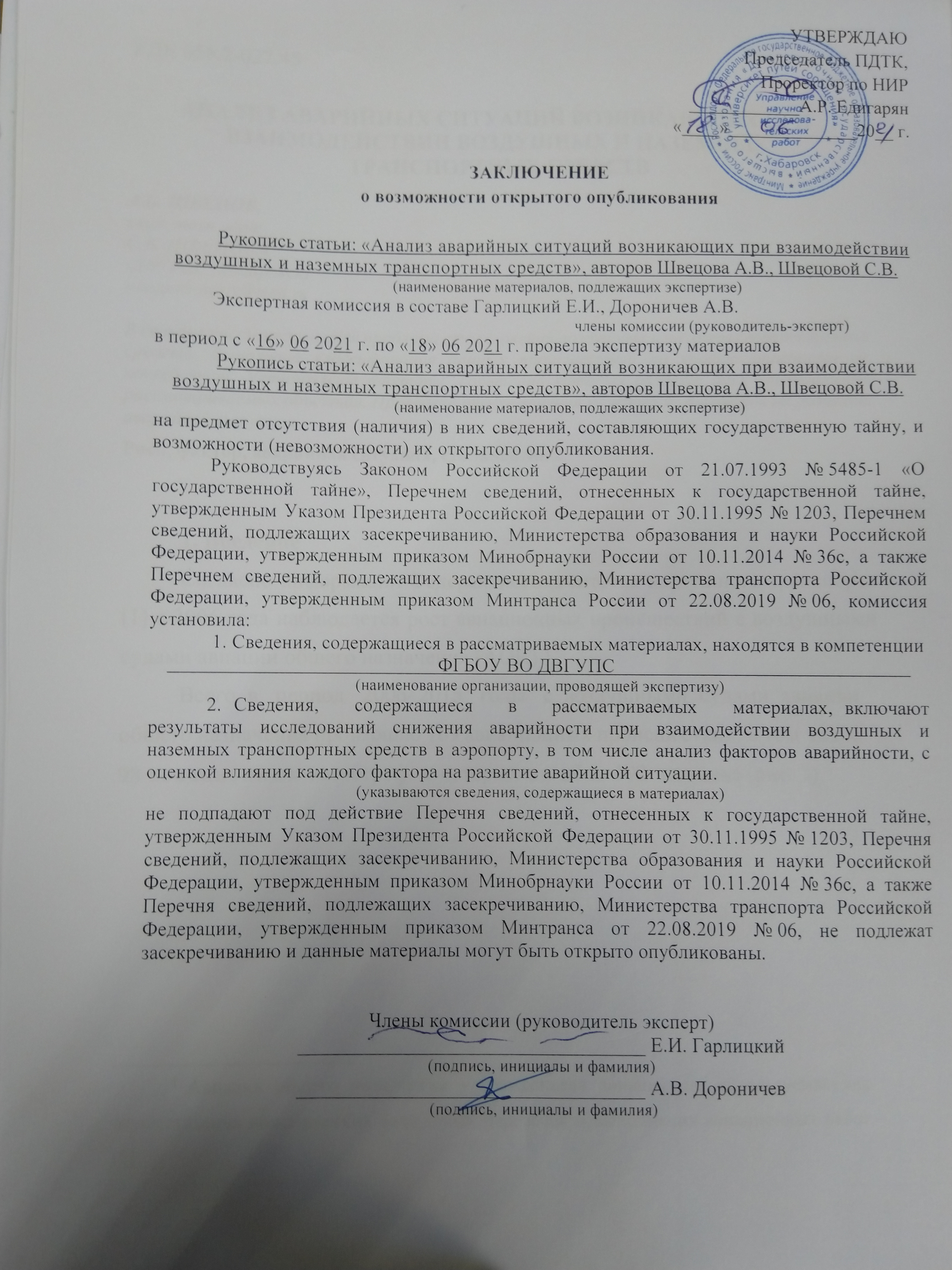 Анализ аварийных ситуаций возникающих при взаимодействии воздушных и наземных транспортных средств