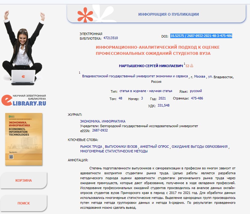 Информационно-аналитический подход к оценке профессиональных ожиданий студентов вуза