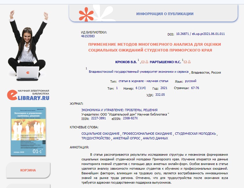 Применение методов многомерного анализа для оценки социальных ожиданий студентов Приморского края
