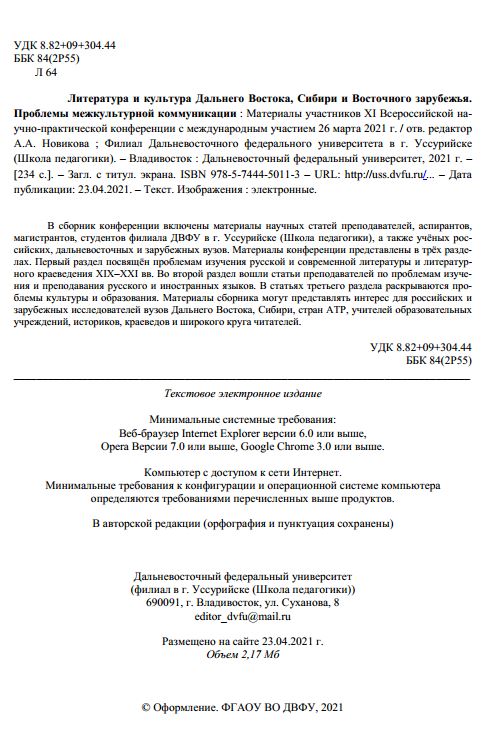 Литература и культура Дальнего Востока, Сибири и Восточного зарубежья. Проблемы межкультурной коммуникации