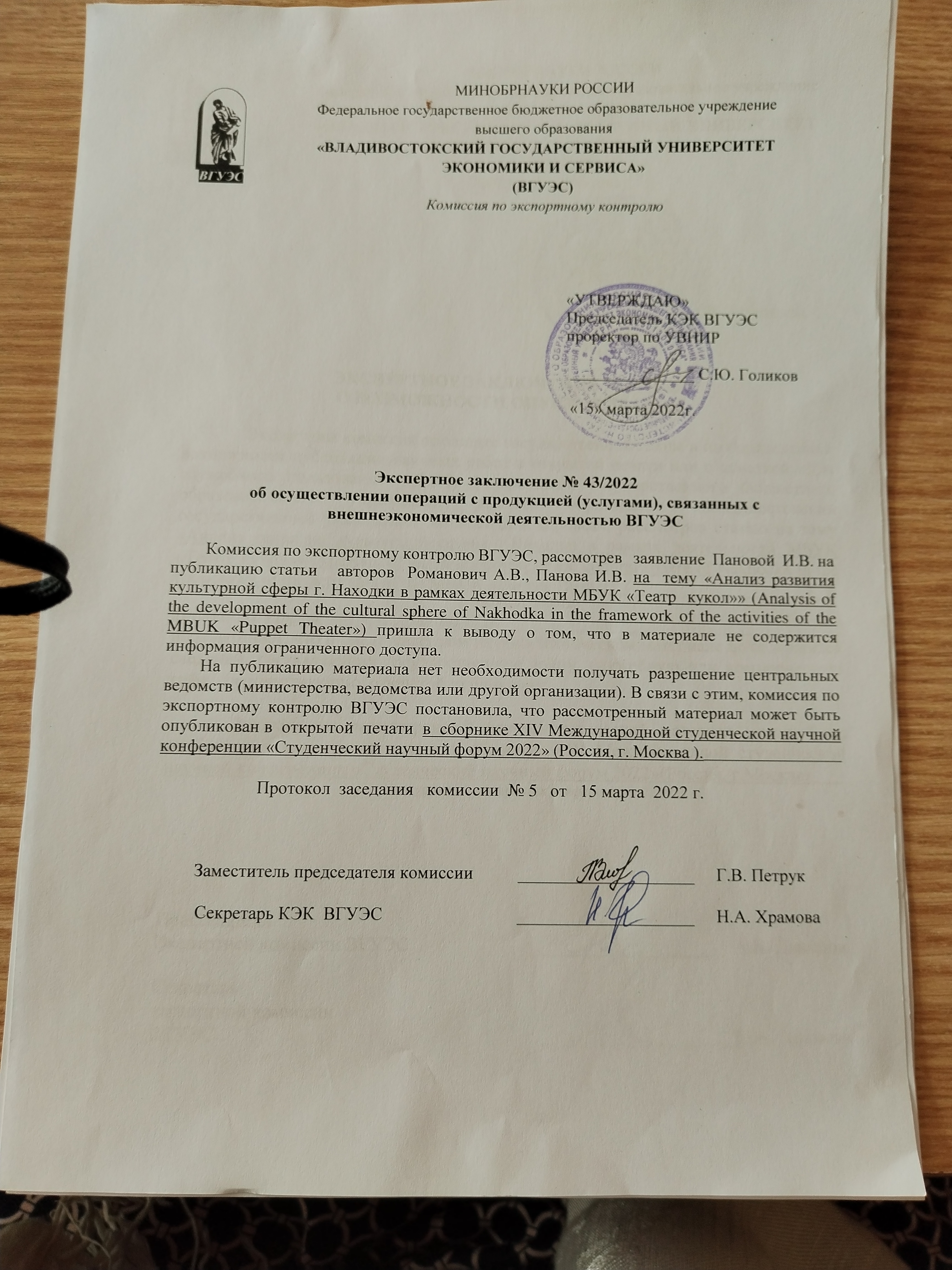 Анализ развития культурной сферы г. Находки в рамках деятельности МБУК «Театр кукол»