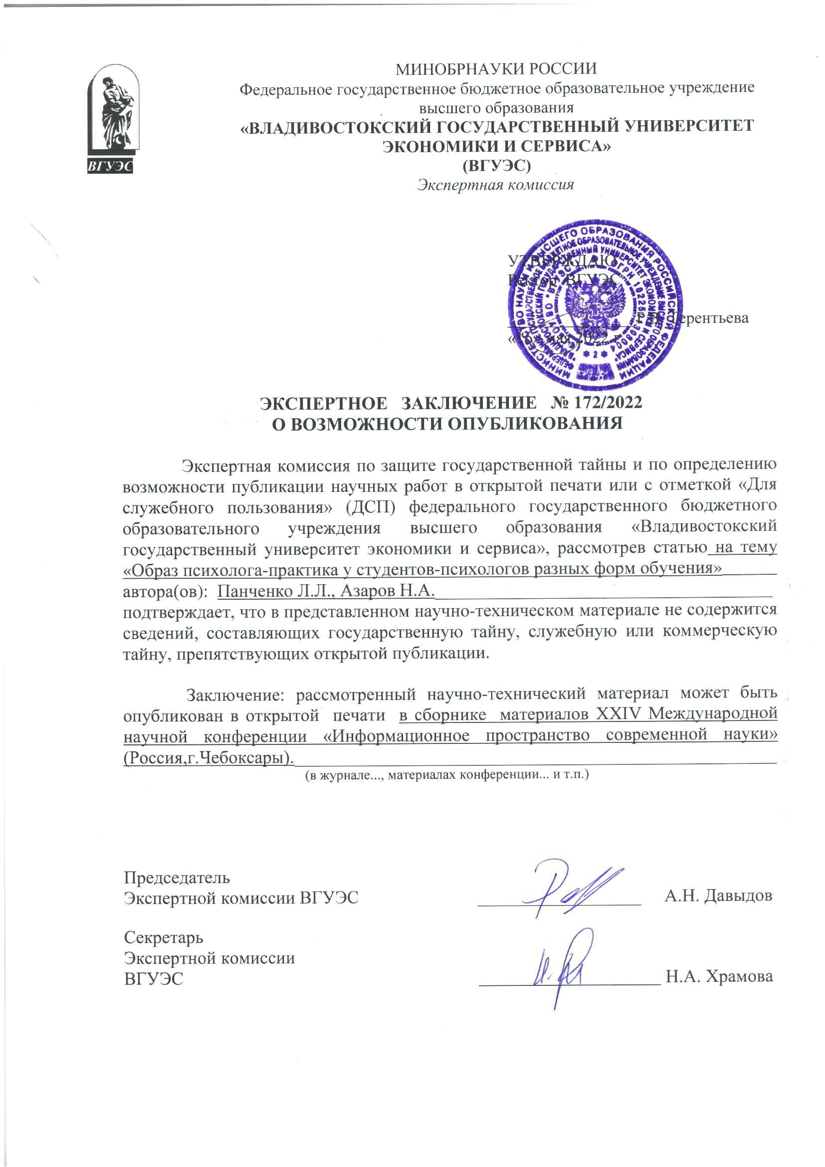 ОБРАЗ ПСИХОЛОГА-ПРАКТИКА У СТУДЕНТОВ-ПСИХОЛОГОВ РАЗНЫХ ФОРМ ОБУЧЕНИЯ