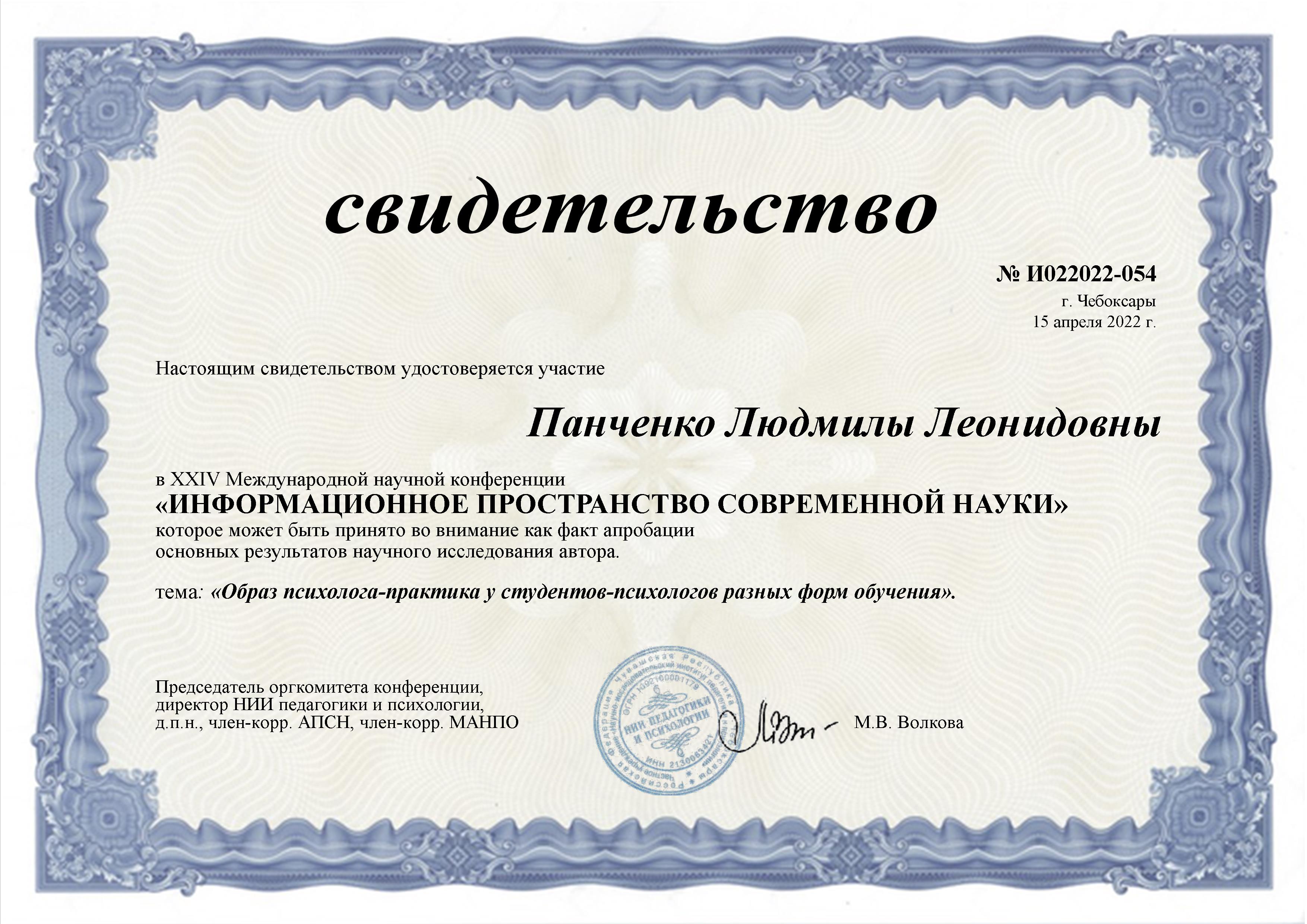 ИНФОРМАЦИОННОЕ ПРОСТРАНСТВО СОВРЕМЕННОЙ НАУКИ (г. Чебоксары, Россия, 15 апреля 2022 г.) // Научный потенциал