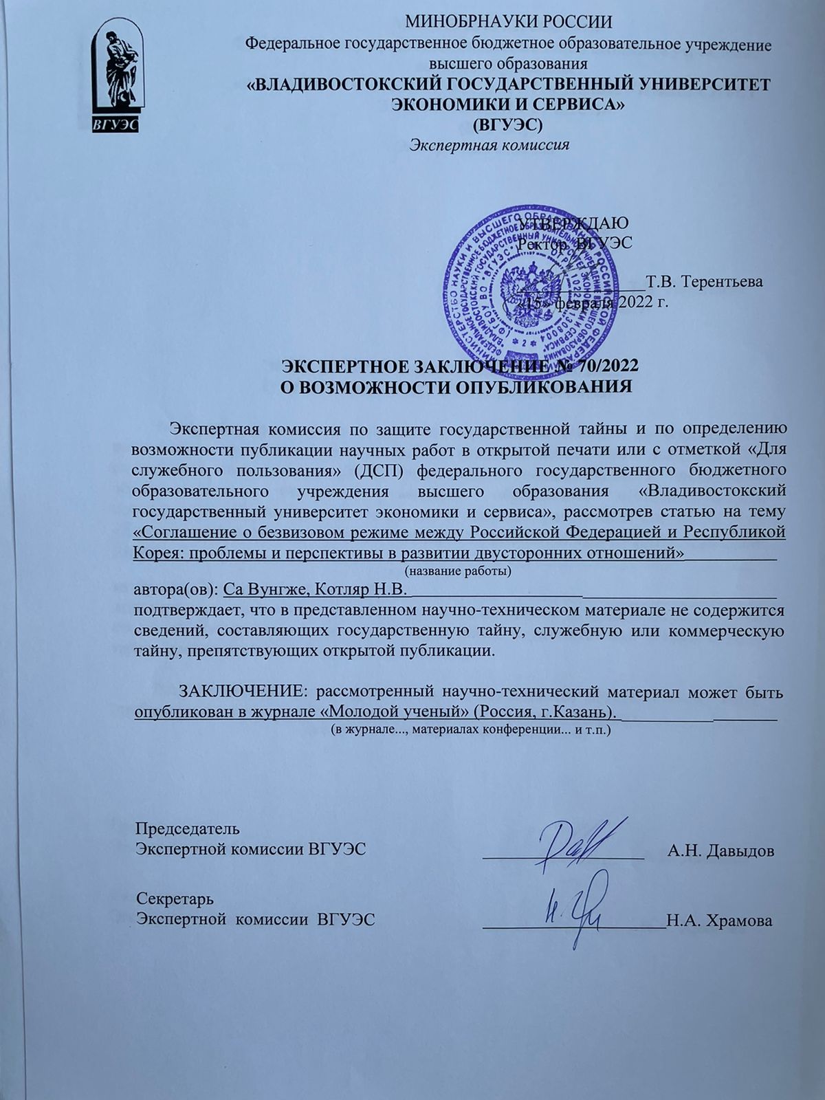 Соглашение о безвизовом режиме между Российской Федерацией и Республикой Корея: проблемы и перспективы в развитии двусторонних отношений Пожалуйста, не забудьте правильно оформить цитату: Са, Вунгдже. Соглашение о безвизовом режиме между Российской