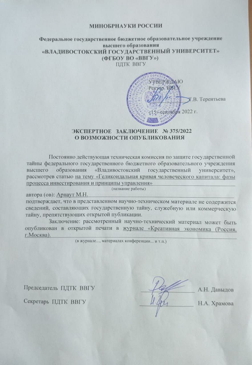 Геликоидальная кривая человеческого капитала: фазы процесса инвестирования и принципы управления