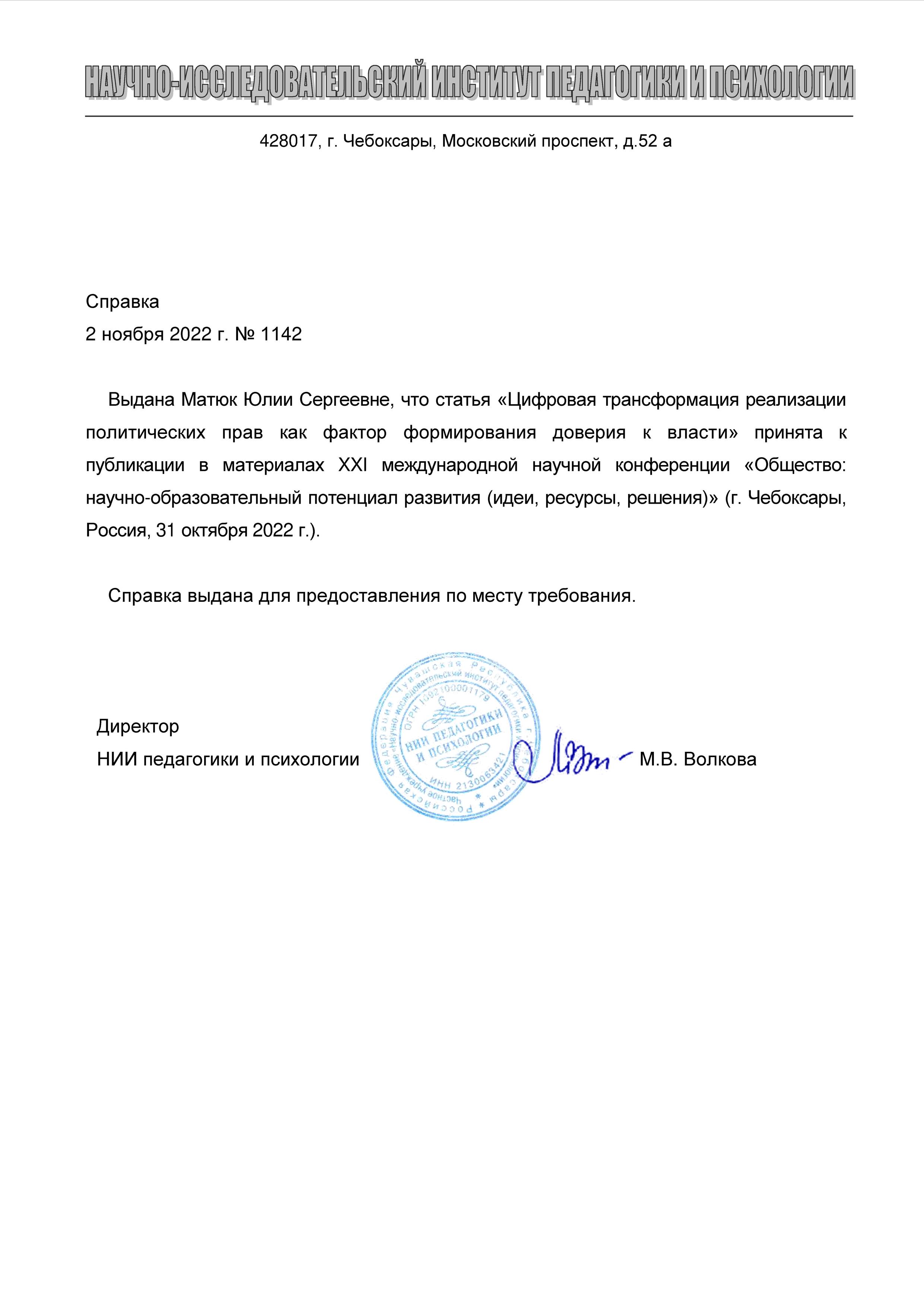 ЦИФРОВАЯ ТРАНСФОРМАЦИЯ РЕАЛИЗАЦИИ ПОЛИТИЧЕСКИХ ПРАВ КАК ФАКТОР ФОРМИРОВАНИЯ ДОВЕРИЯ К ВЛАСТИ