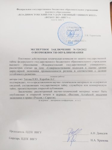 СОВЕРШЕНСТВОВАНИЕ ПОДХОДОВ К ОЦЕНКЕ УРОВНЯ ЦИРКУЛЯРНОЙ ЭКОНОМИКИ ПРОМЫШЛЕННОСТИ РЕГИОНА В СООТВЕТСТВИИ С ЦЕЛЯМИ УСТОЙЧИВОГО РАЗВИТИЯ