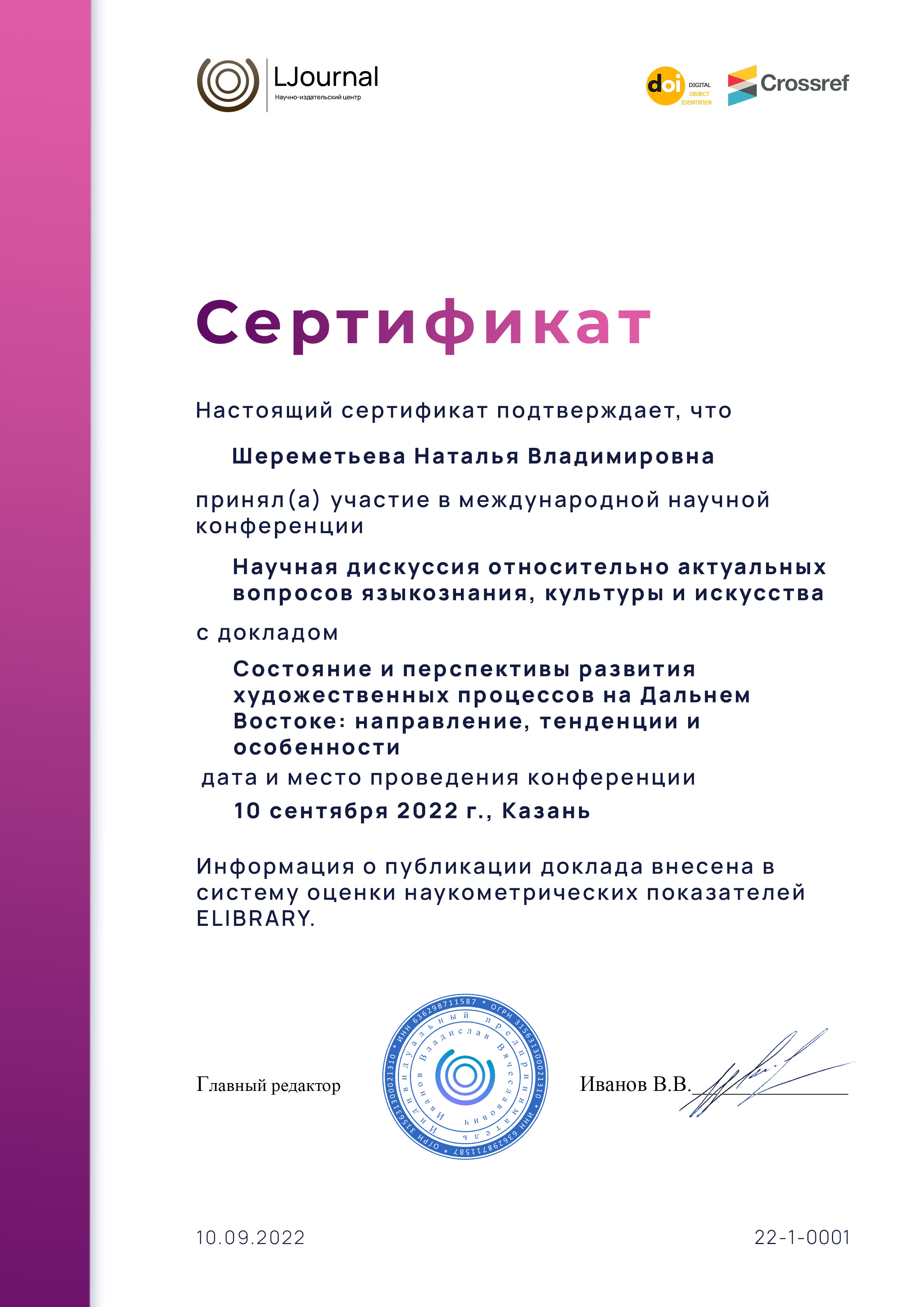 Сборник научных трудов по результатам I международной научно-практической конференции Научная дискуссия относительно актуальных вопросов языкознания, культуры и искусства