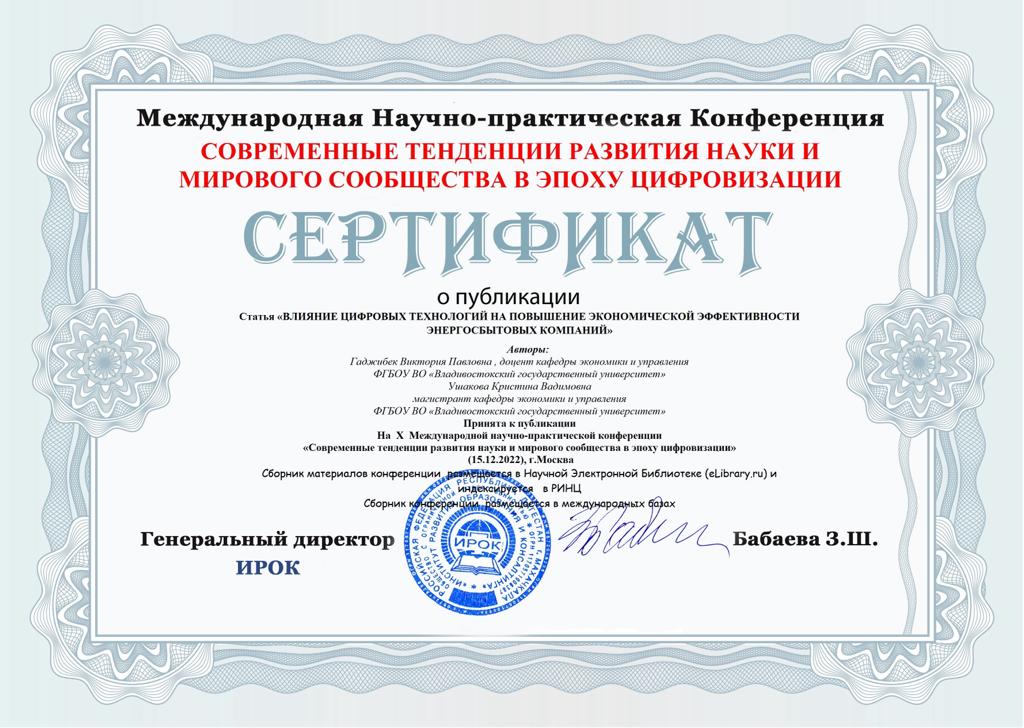 Х Межданародная научно-практическая конференция "Современное тенденции развития науки и мирового сообщества в эпоху цифровизации"