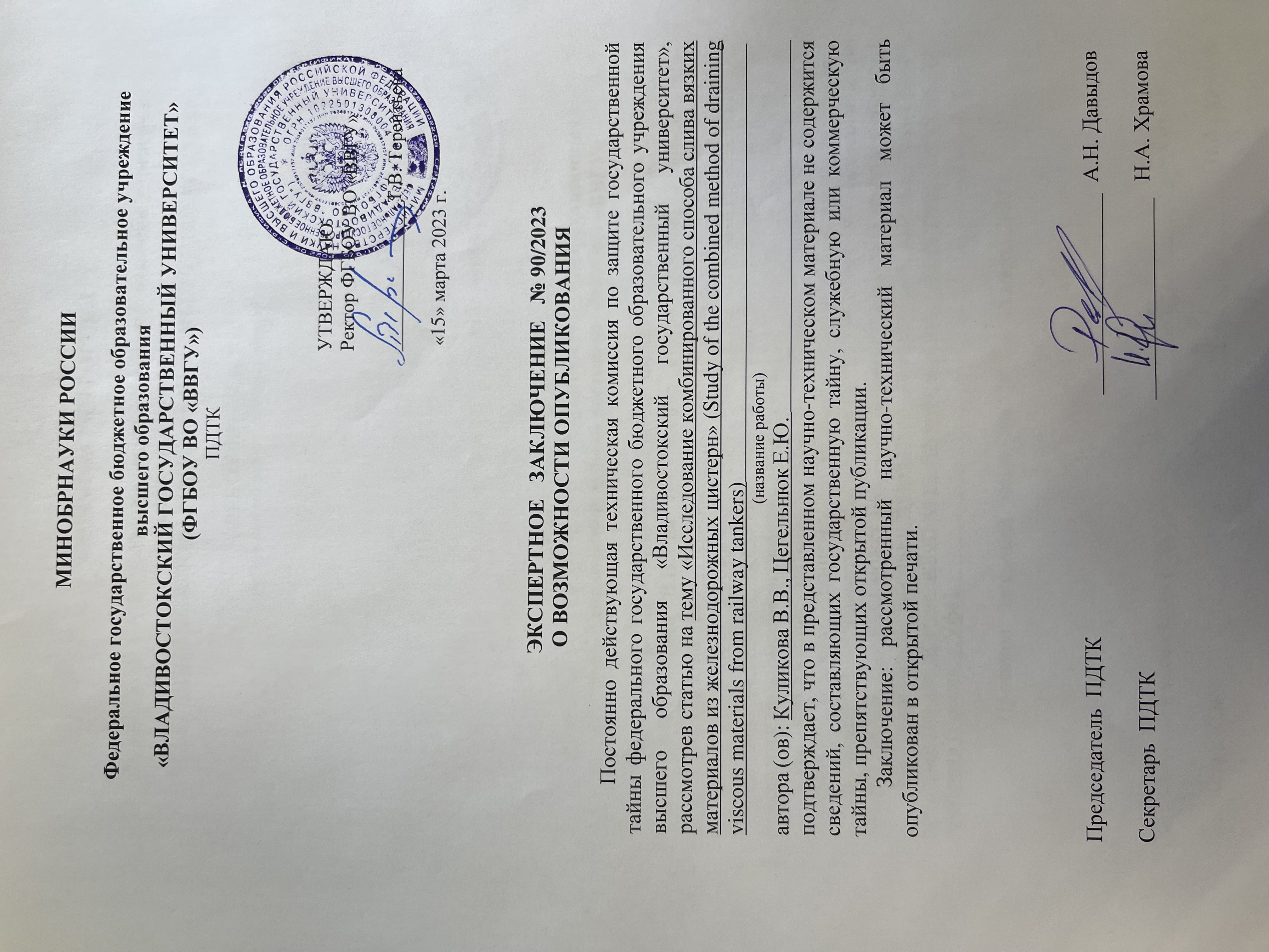 «Исследование комбинированного способа слива вязких материалов из железнодорожных цистерн».