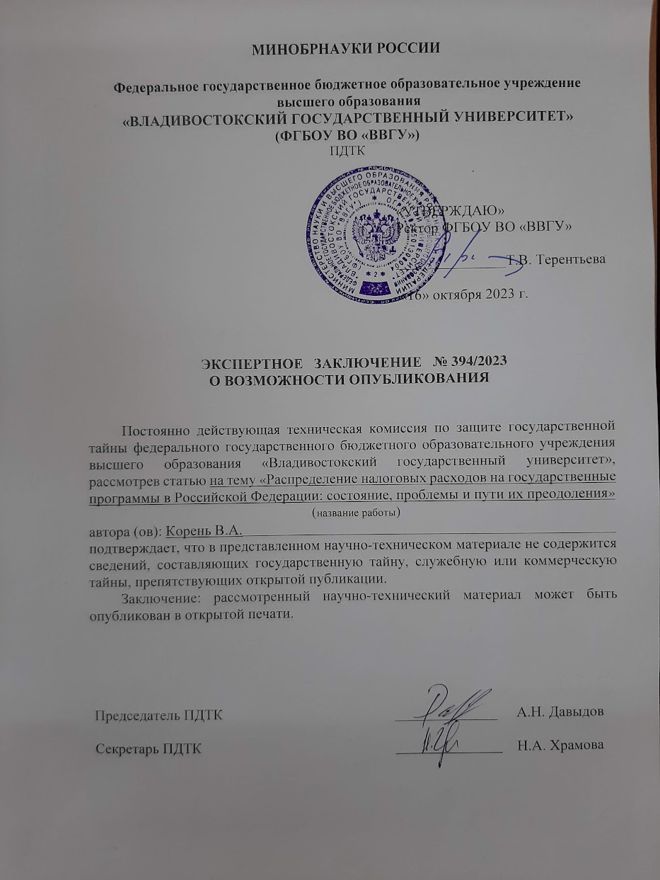 Распределение налоговых расходов на государственные программы в Российской Федерации: состояние, проблемы и пути их преодоления