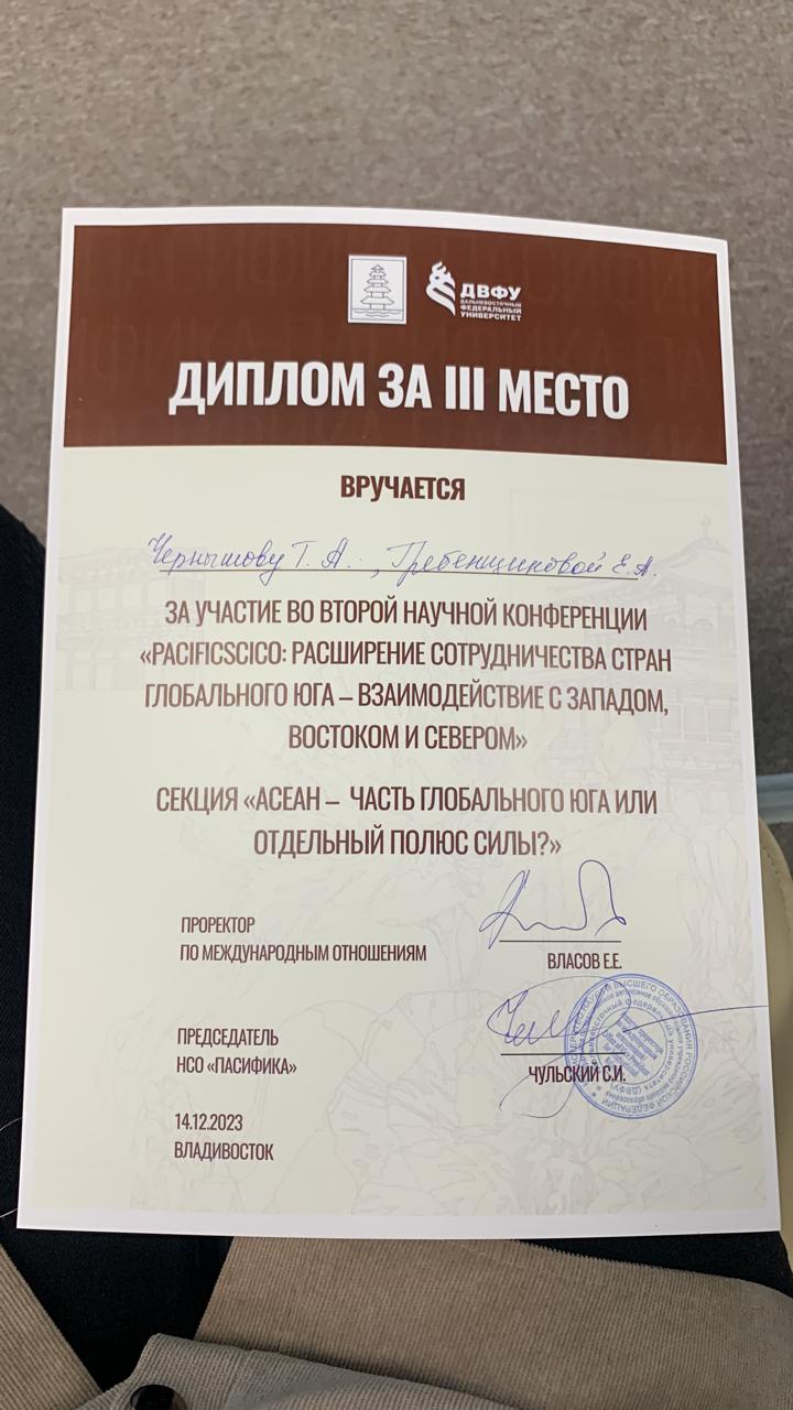II Научная конференция PacificSciCo "Расширение сотрудничества стран Глобального Югра - взаимодействие с Севером, Западом и Востоком" 13-16 декабря 2023. Владивосток, ДВФУ.