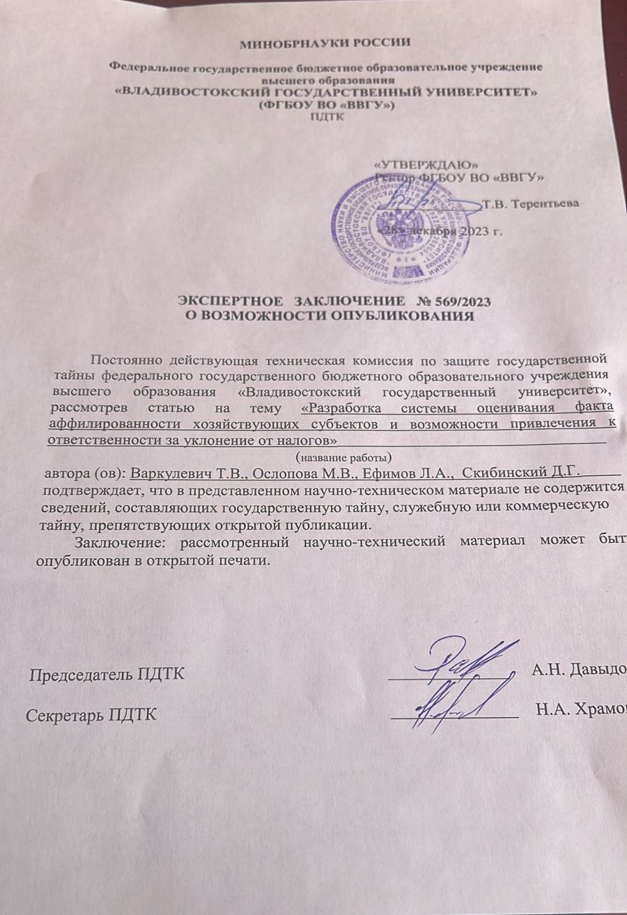 РАЗРАБОТКА СИСТЕМЫ ОЦЕНИВАНИЯ ФАКТА АФФИЛИРОВАННОСТИ ХОЗЯЙСТВУЮЩИХ СУБЪЕКТОВ И ВОЗМОЖНОСТИ ПРИВЛЕЧЕНИЯ К ОТВЕТСТВЕННОСТИ ЗА УКЛОНЕНИЕ ОТ НАЛОГОВ