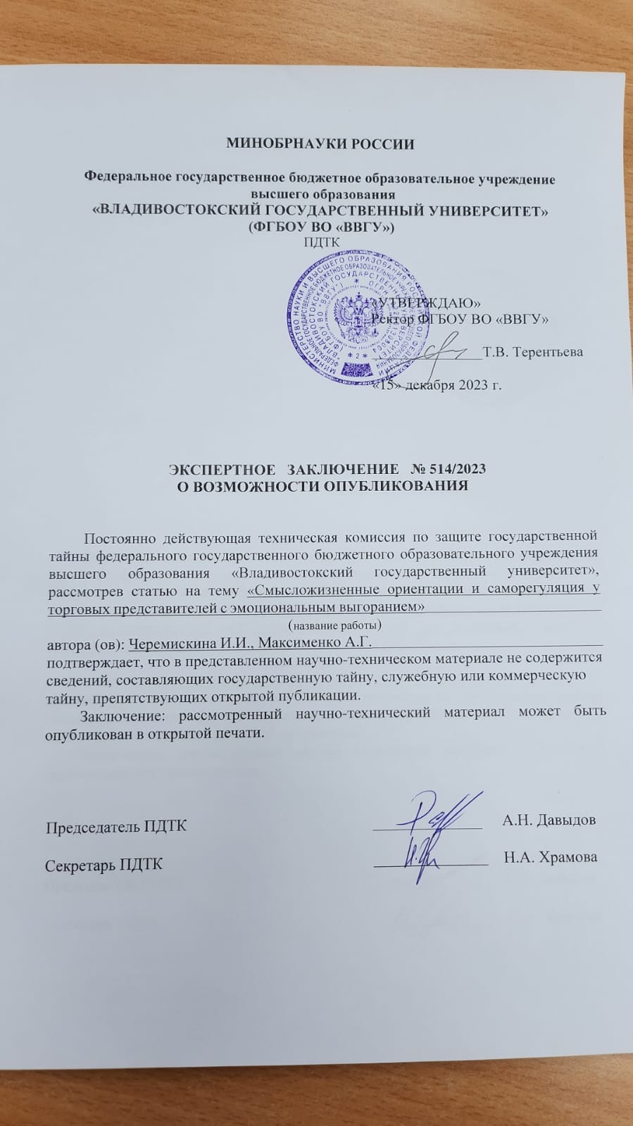 Смысложизненные ориентации и саморегуляция у торговых представителей с эмоциональным выгоранием