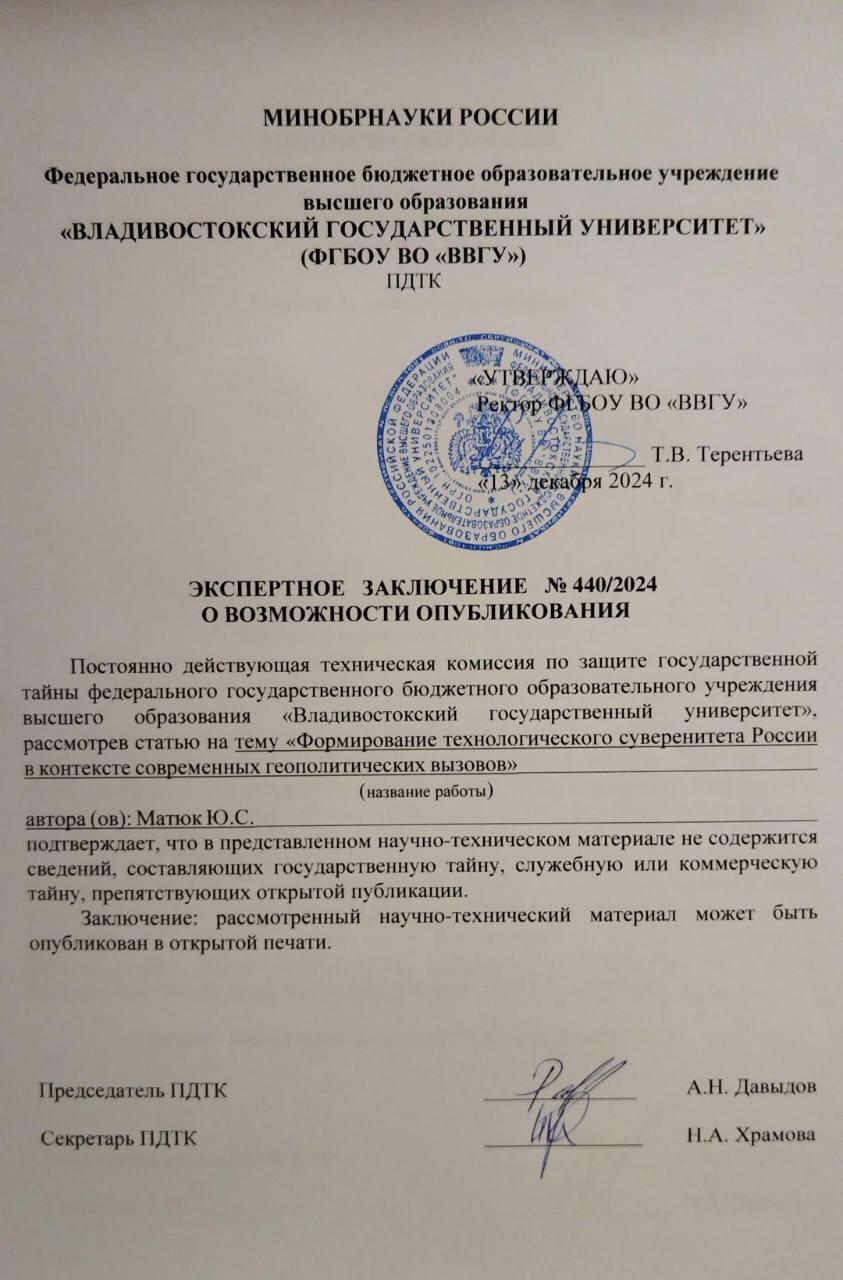Формирование технологического суверенитета России в контексте современных геополитических вызовов