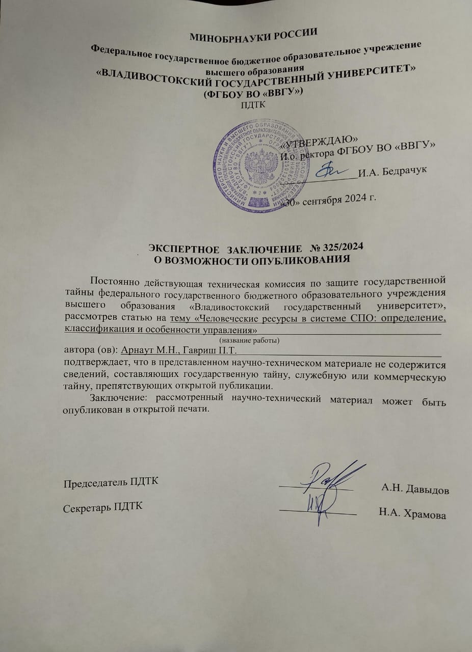 ЧЕЛОВЕЧЕСКИЕ РЕСУРСЫ В СИСТЕМЕ СПО: ОПРЕДЕЛЕНИЕ, КЛАССИФИКАЦИЯ И ОСОБЕННОСТИ УПРАВЛЕНИЯ