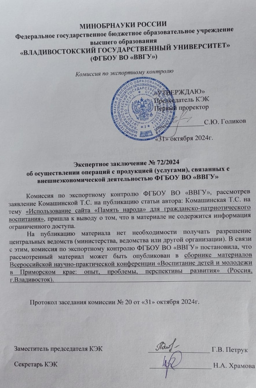 Сборник материалов Всероссийской научно-практической конференции "Духовно-нравственное развитие и воспитание детей и молодежи: опыт, проблемы, перспективы развития" (30-31 октября 2024 года). - Владивосток: Издательство ГАУ ДПО «ПК ИРО», 2024. С. 47-50.
