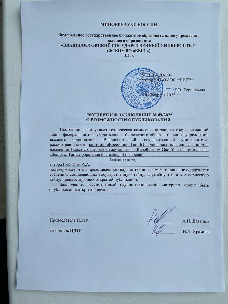 Rebellion by Gao Yun-chang as a last attempt of Parhae population to creating of their state