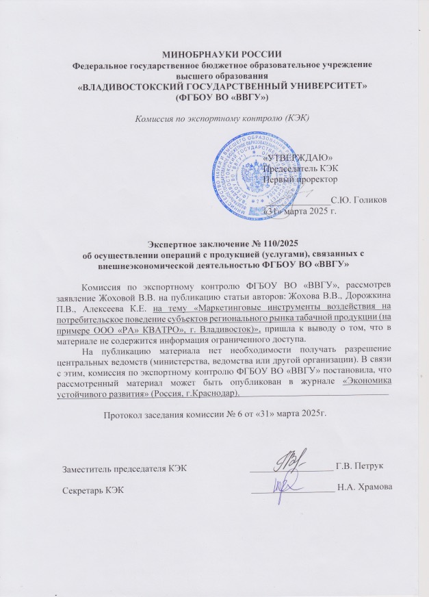 Маркетинговые инструменты воздействия на потребительское поведение субъектов регионального рынка табачной продукции (на примере ООО "РА" КВАТРО", г. Владивосток)