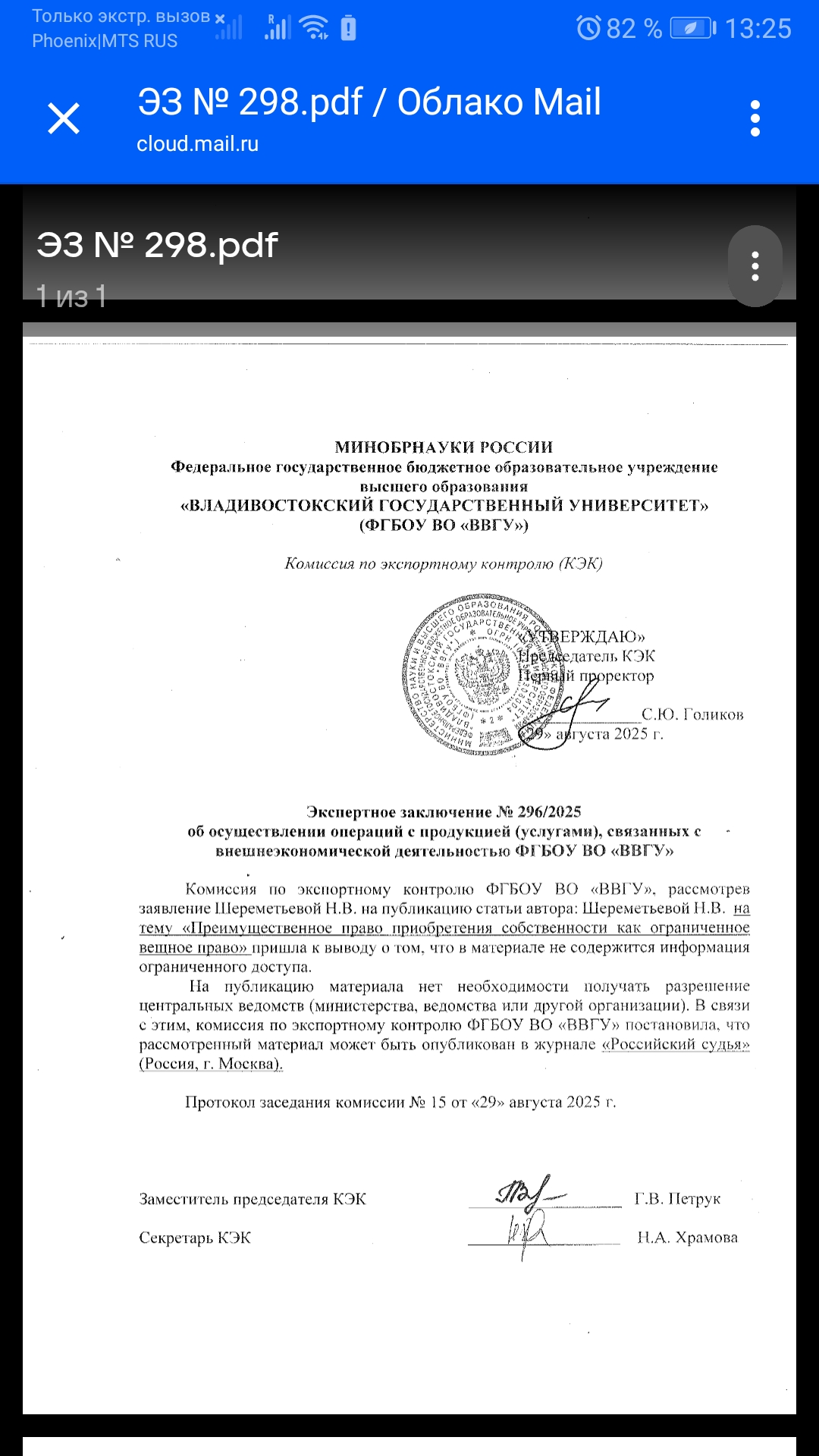 Преимущественное право приобретения собственности как ограниченное вещное право