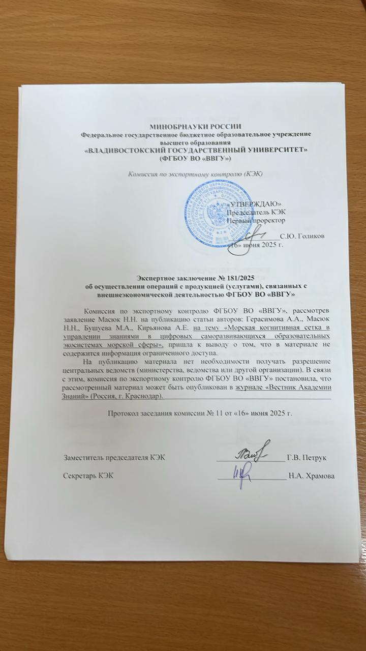 Морская когнитивная сетка в управлении знаниями в цифровых саморазвивающихся образовательных экосистемах морской сферы