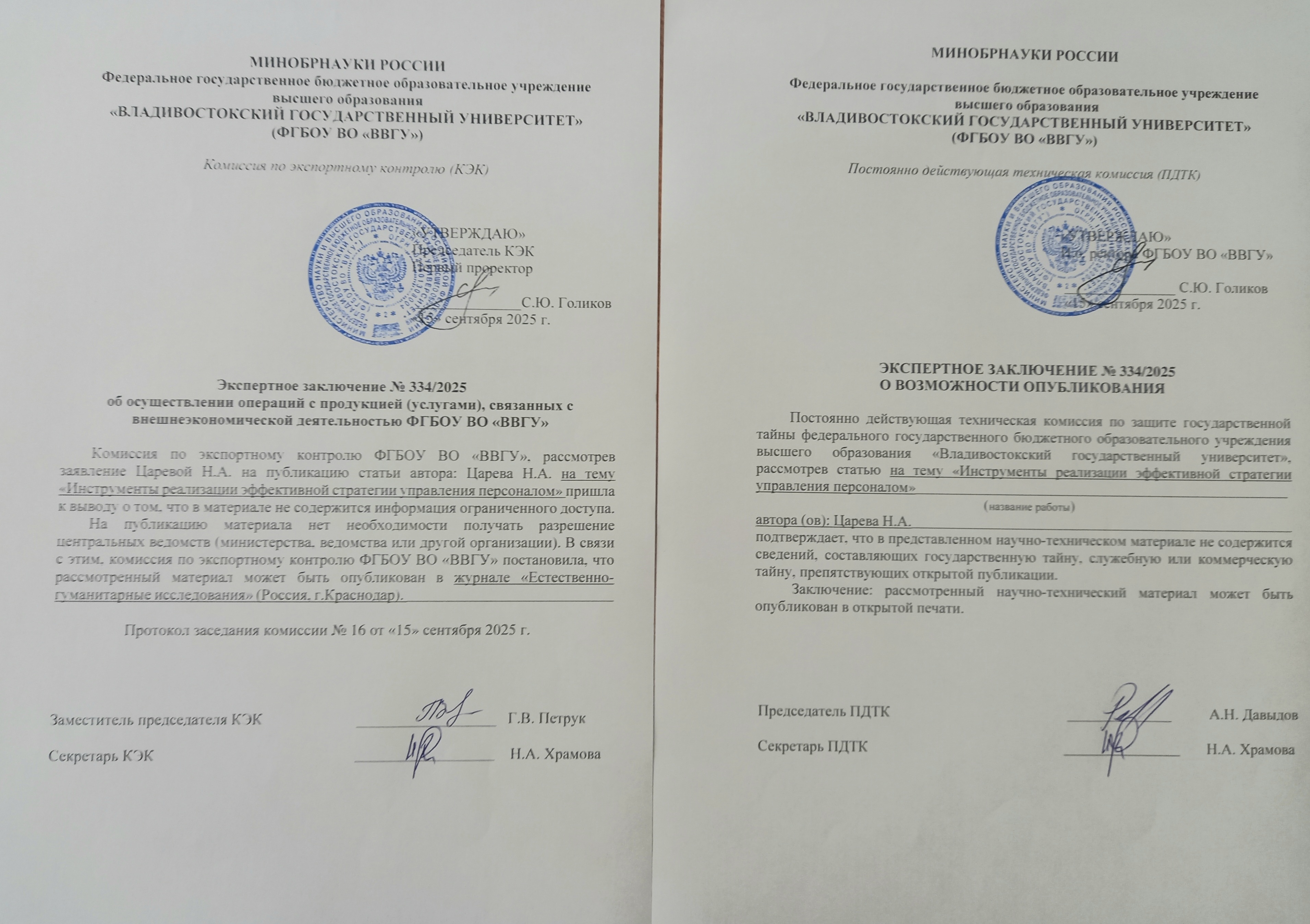 ИНСТРУМЕНТЫ РЕАЛИЗАЦИИ ЭФФЕКТИВНОЙ СТРАТЕГИИ УПРАВЛЕНИЯ ПЕРСОНАЛОМ