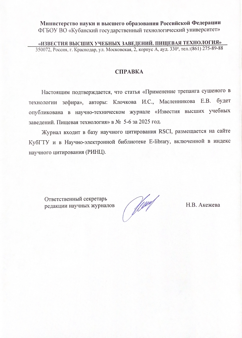 Применение трепанга сушеного в технологии зефира