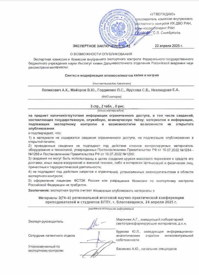 Синтез и модификация алюмосиликатов калия и натрия