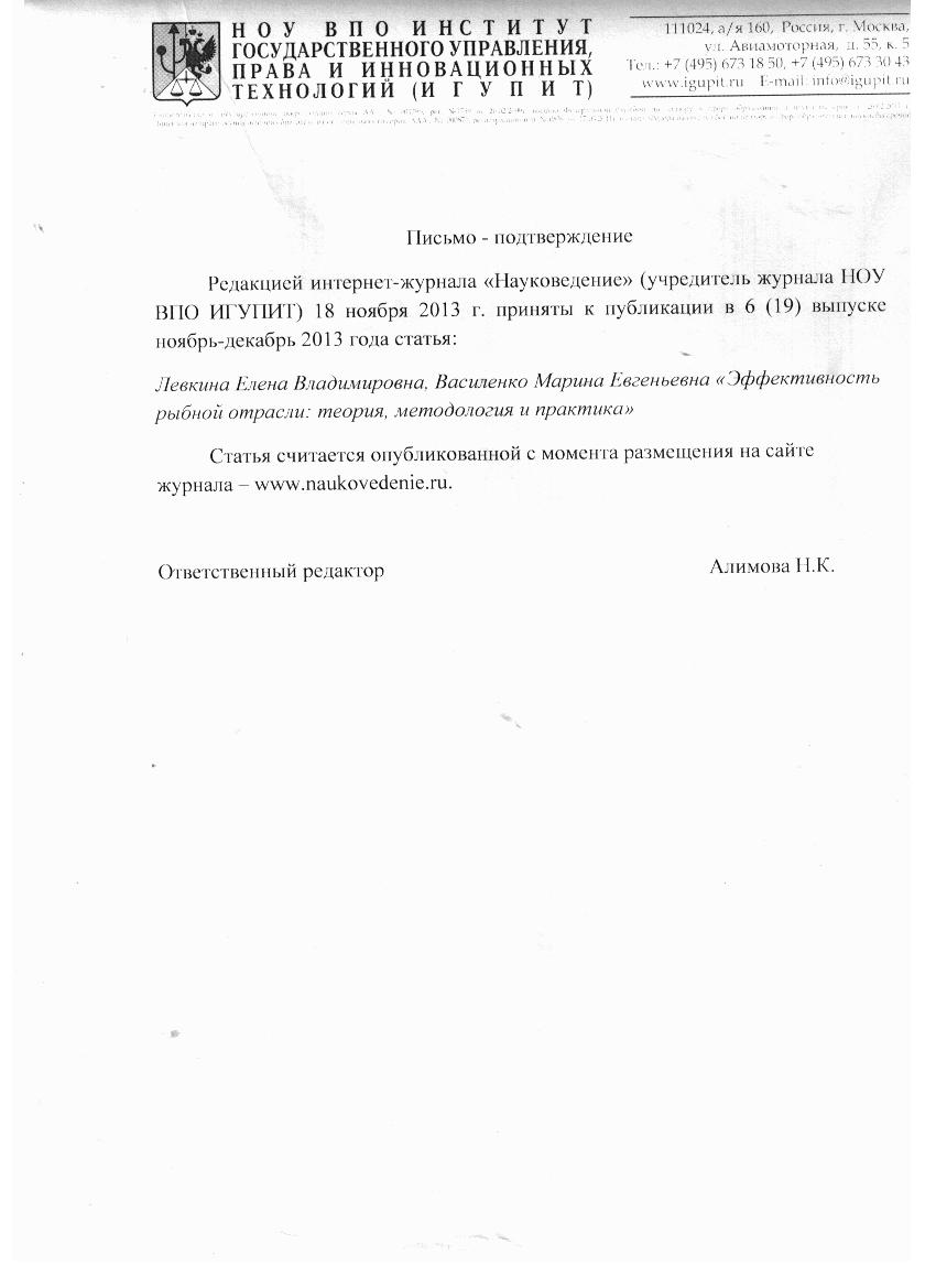 Эффективность рыбной отрасли:теория, методология,практика