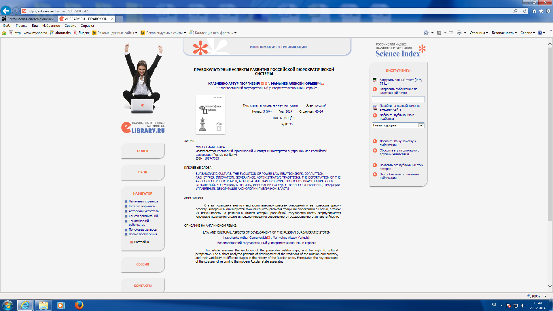 ПРАВОКУЛЬТУРНЫЕ АСПЕКТЫ РАЗВИТИЯ РОССИЙСКОЙ БЮРОКРАТИЧСКОЙ СИСТЕМЫ