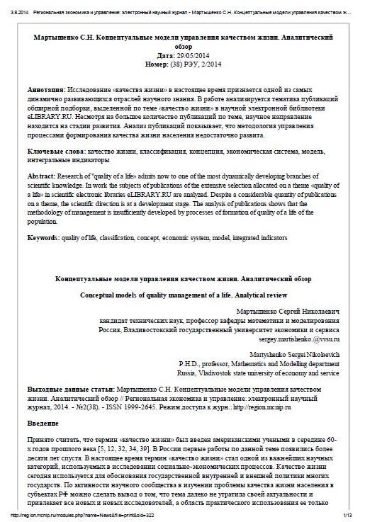 Концептуальные модели управления качеством жизни. Аналитический обзор.