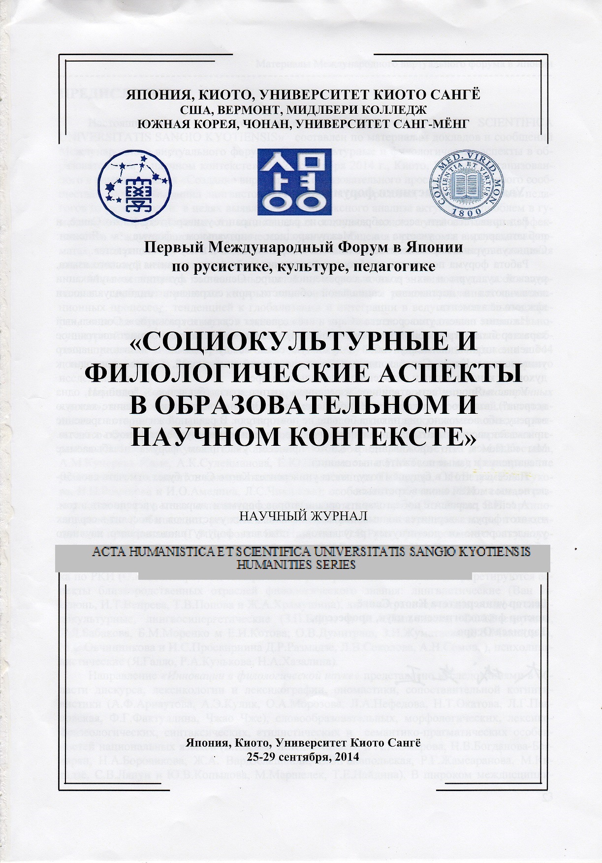 Acta humanistica et scientifica universitatis sangio kyotiensis. Humanities series