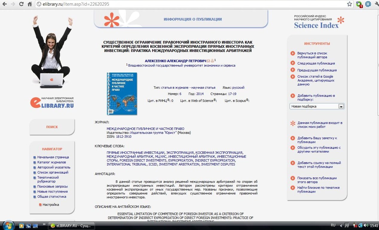 СУЩЕСТВЕННОЕ ОГРАНИЧЕНИЕ ПРАВОМОЧИЙ ИНОСТРАННОГО ИНВЕСТОРА КАК КРИТЕРИЙ ОПРЕДЕЛЕНИЯ КОСВЕННОЙ ЭКСПРОПРИАЦИИ ПРЯМЫХ ИНОСТРАННЫХ ИНВЕСТИЦИЙ: ПРАКТИКА МЕЖДУНАРОДНЫХ ИНВЕСТИЦИОННЫХ АРБИТРАЖЕЙ