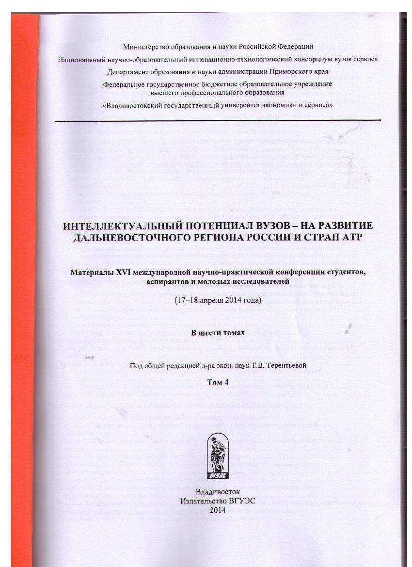 Интеллектуальный потенциал вузов - на развитие Дальневосточного региона России и стран АТР Материалы XVI международной научно-практической конференции студентов, аспирантов и молодых исследователей