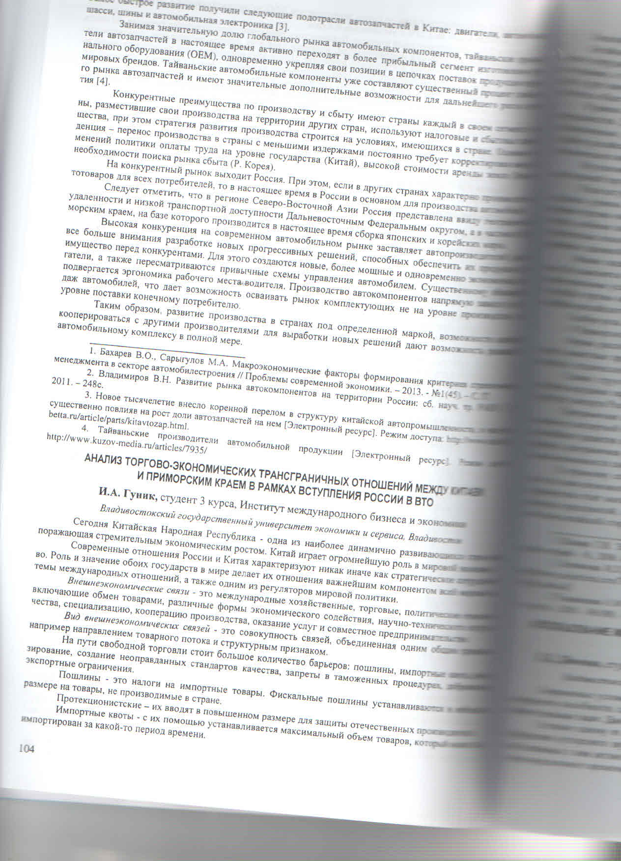 Анализ торгово-экономических трансграничных отношений между Китаем и Приморским краем в рамках вступления России в ВТО