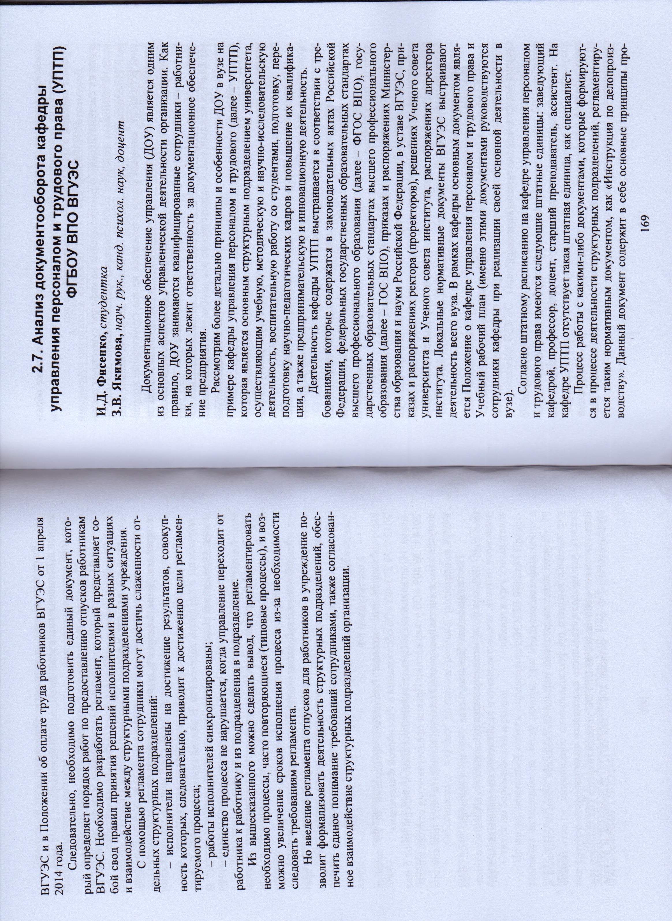 Анализ документооборота кафедры Управления персоналом и трудового права ВГУЭС