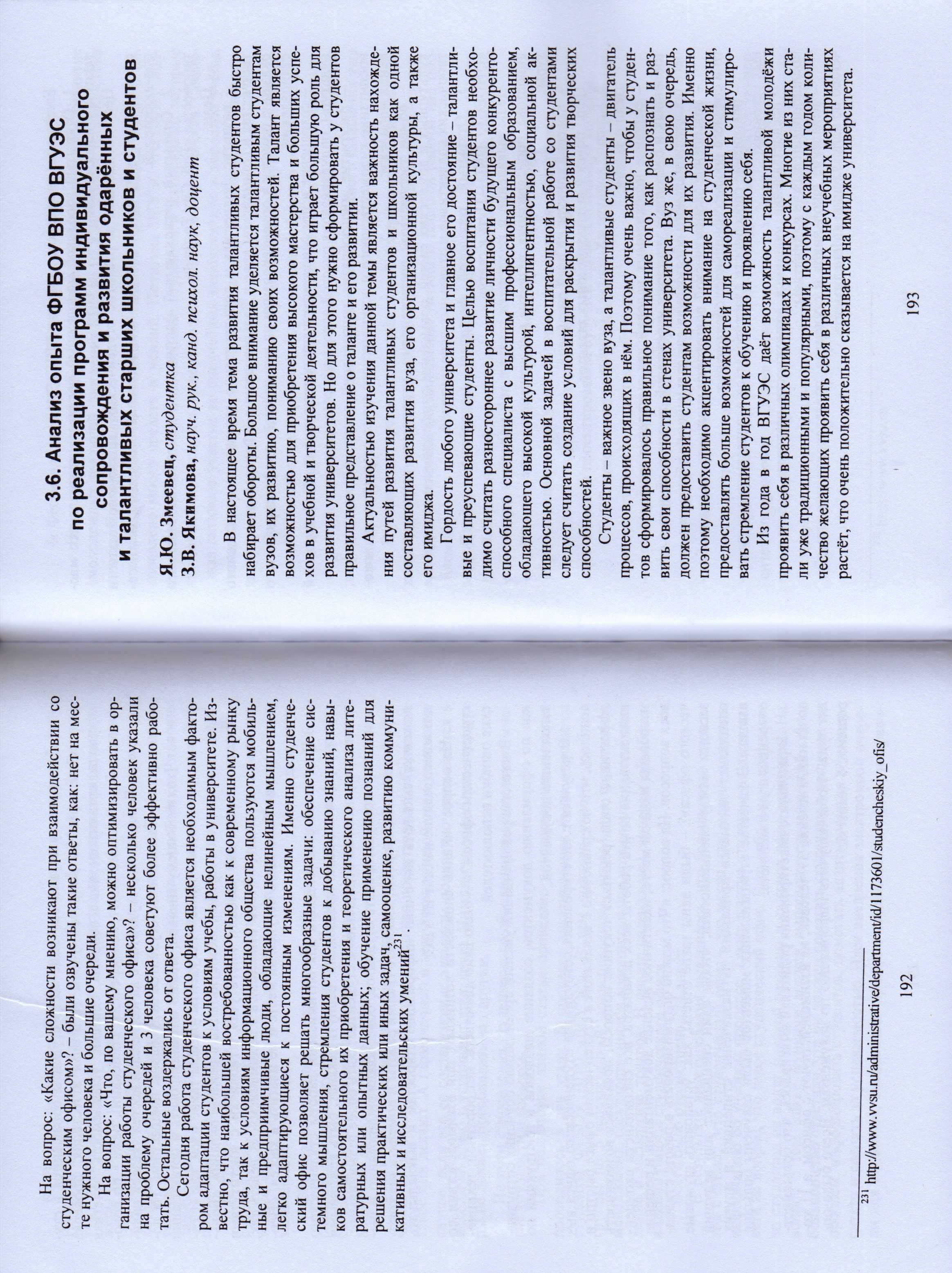 Анализ опыта ФГБОУ ВПО ВГУЭС по реализации программ индивидуального сопровождения и развития одарённых и талантливых старших школьников и студентов