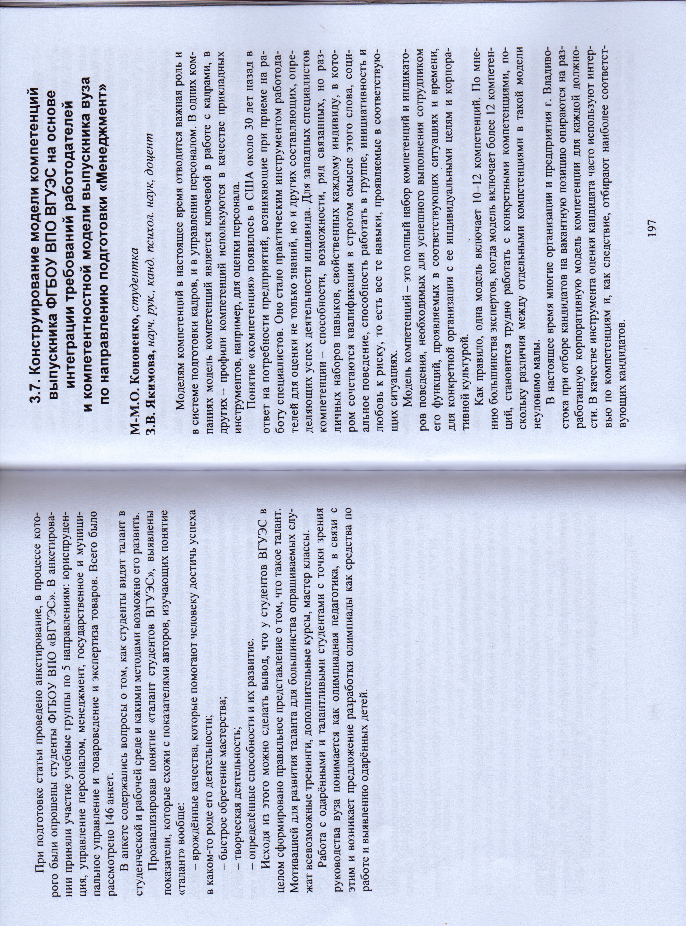 Конструирование модели компетенций выпускника ФГБОУ ВПО ВГУЭС на основе интеграции требований работодателей и компетентностной модели выпускника вуза по направлению подготовки «Менеджмент»