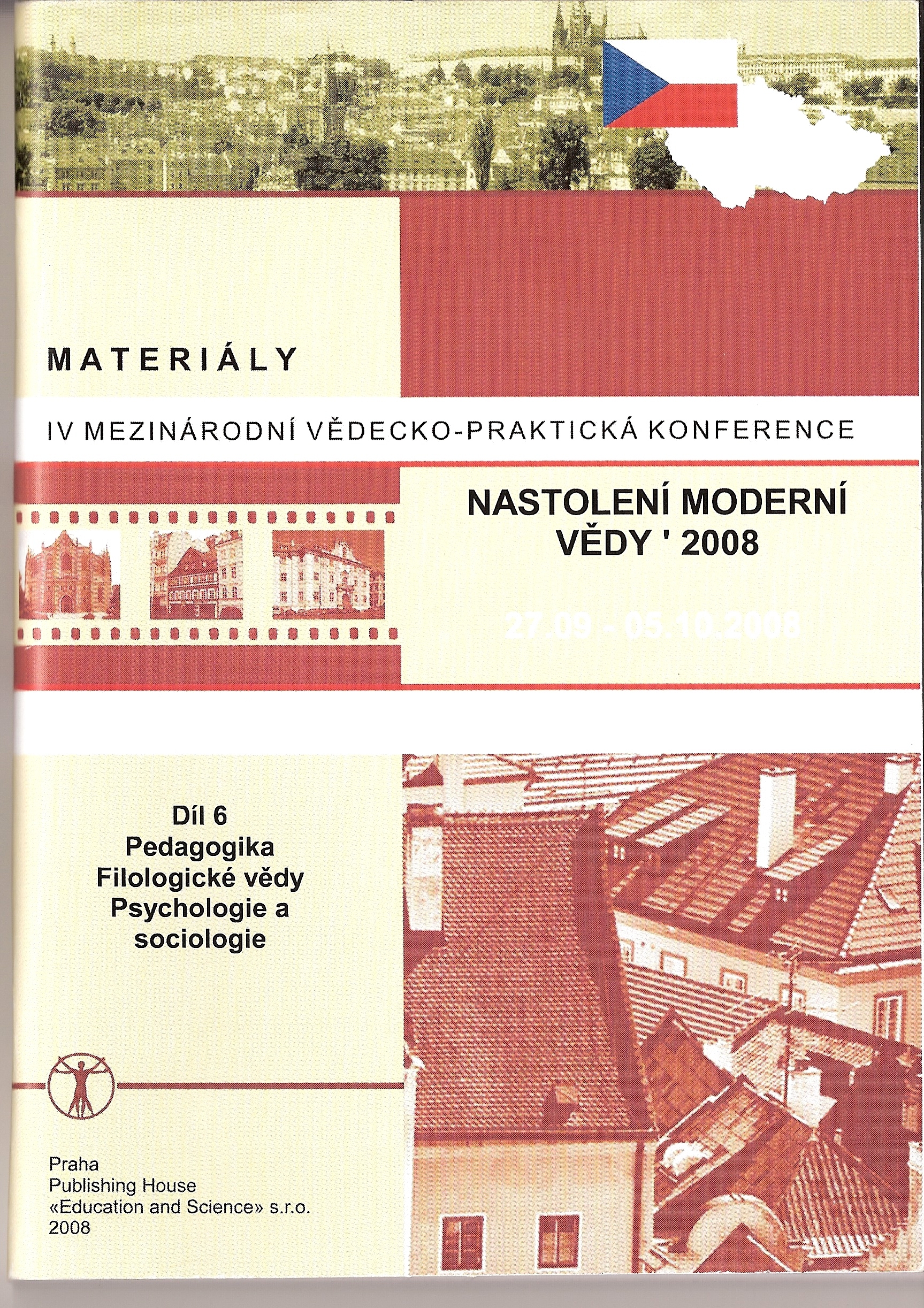 Materialy IV mezinarodni vedecko – praktika conference “Nastoleni moderni vedy – 2008”. – Dil 6. Pedagogika. Filologicke vedy. Psychologie a sociologie: Praha. Publishing House “Education and Science”, 2008.