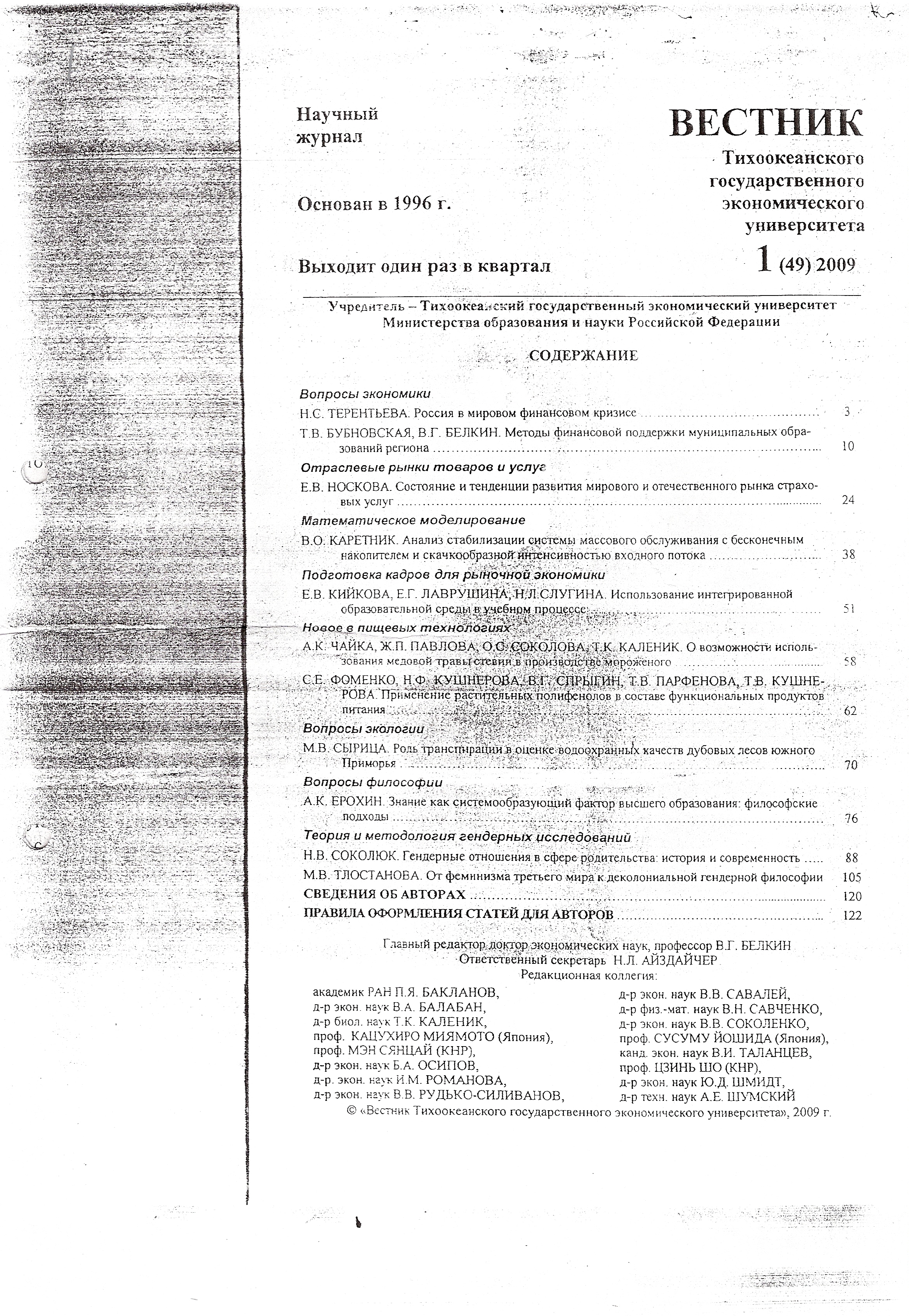 Вестник Тихоокеанского государственного экономического университета