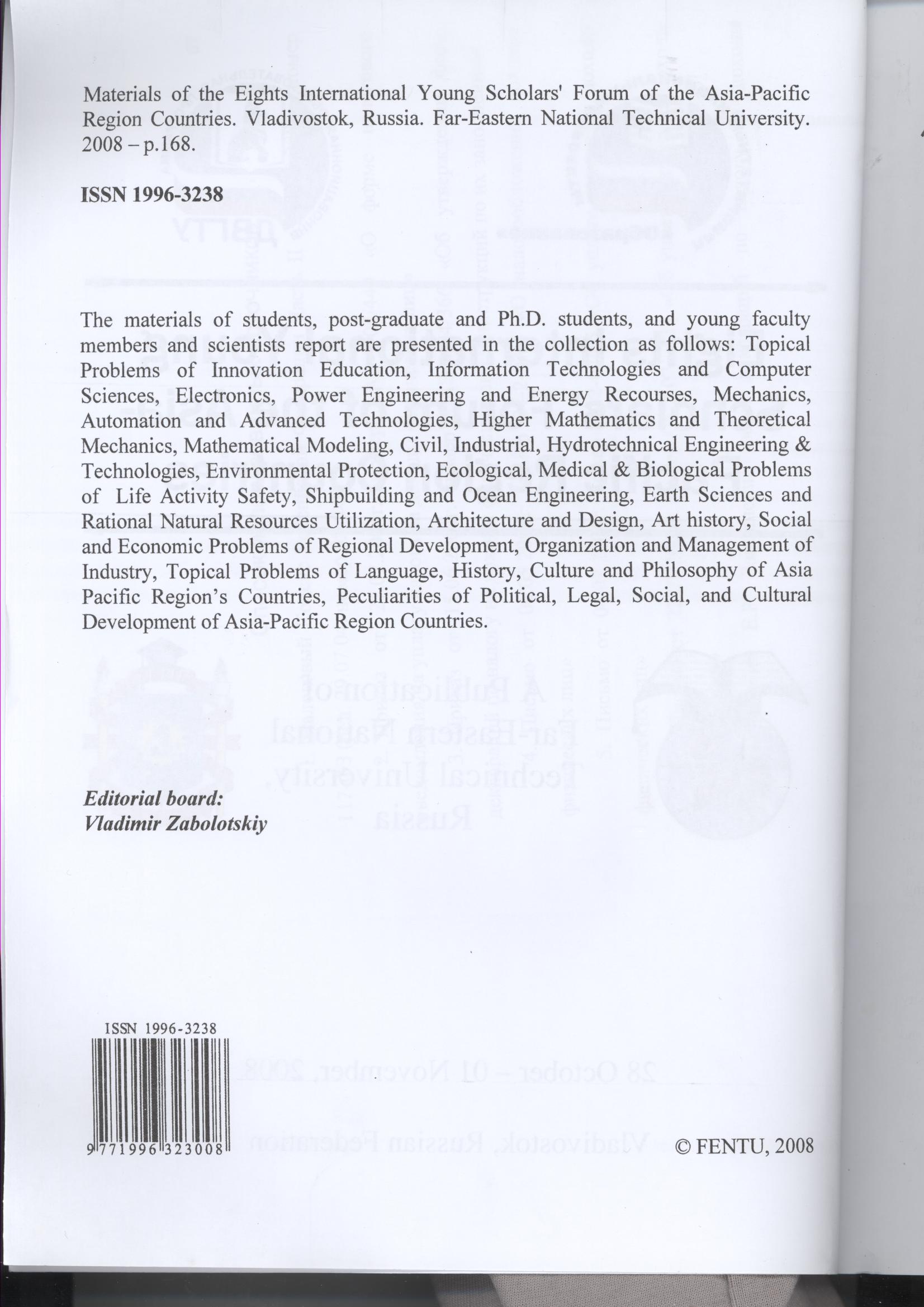 Eights International Young Scholars' Forum of the Asia Pacific Region Countries: Proceedings