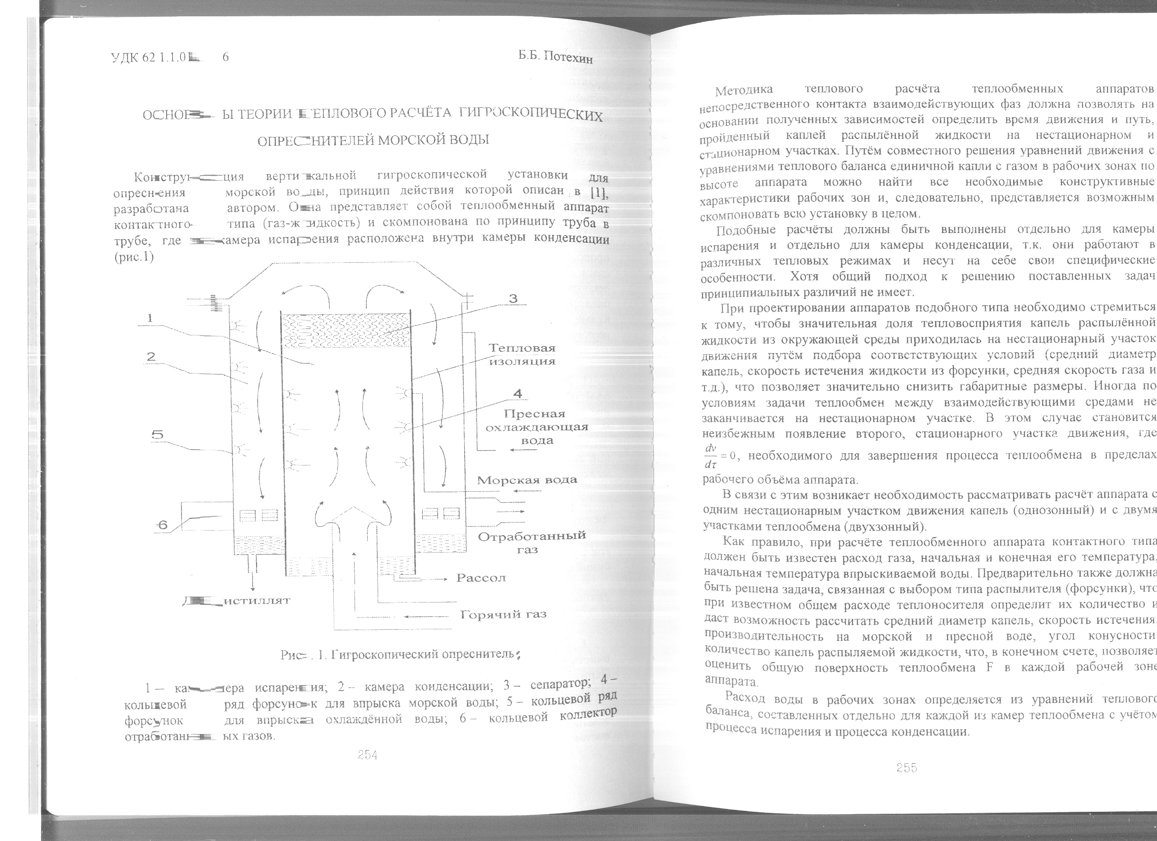 Осовы теории теплового расчета гигроскопических опреснителей морской воды