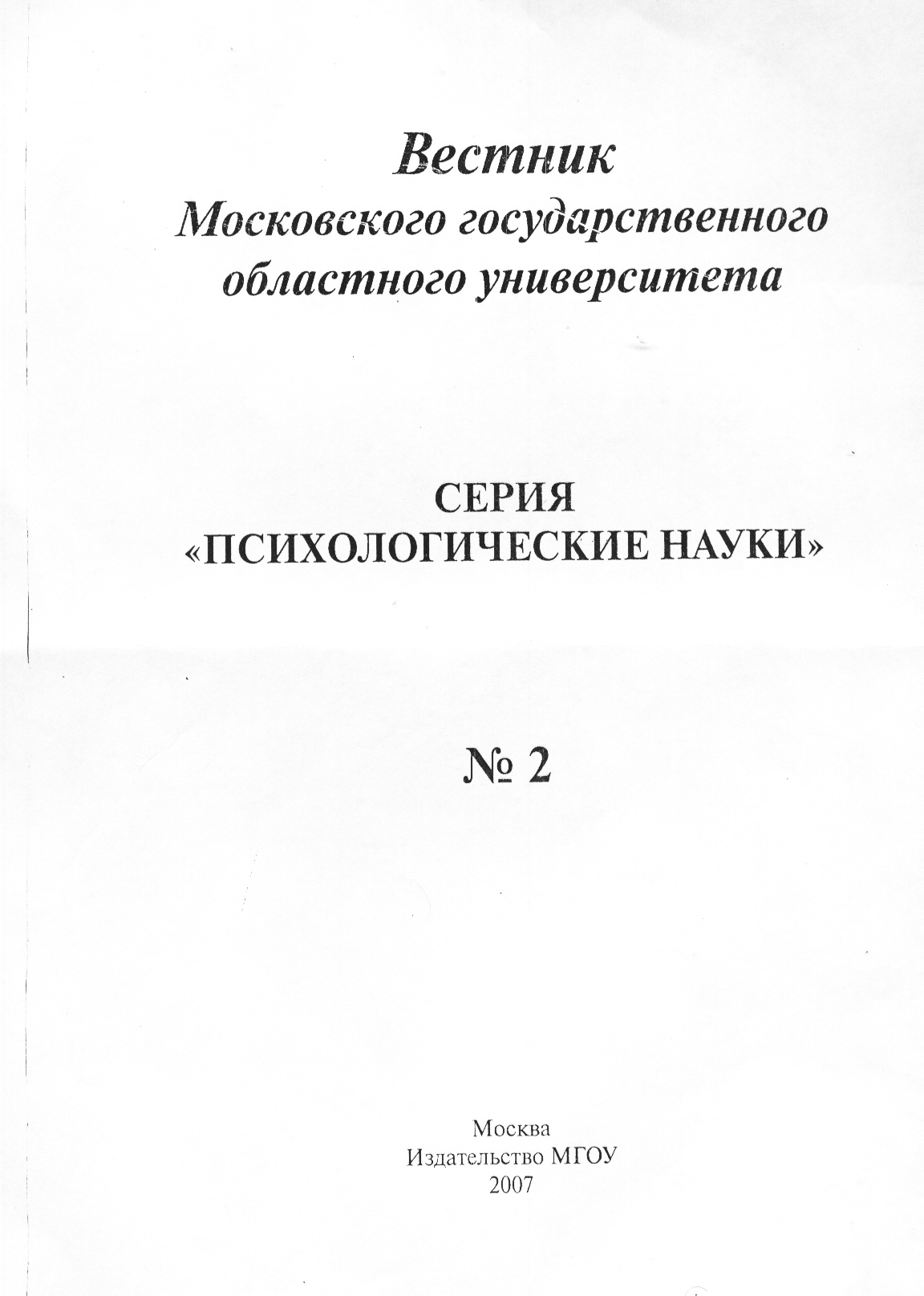 Вестник Московского государственного областного университета серия «Психологические науки»